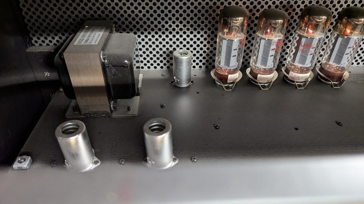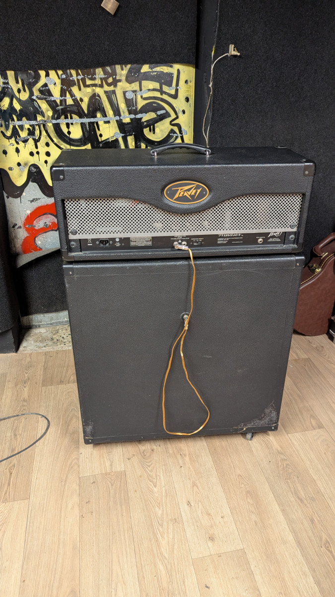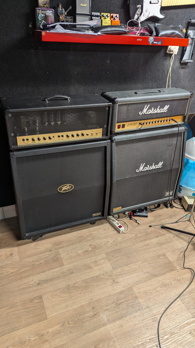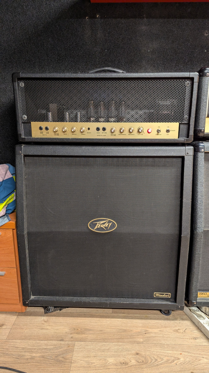 Hola! pongo a la venta este amplificador de 100W completamente a valvulas + pantalla 4x12 en perfecto estado y funcionando al perfectamente, es un ampli monocanal, con opción de boost por boton o poniendo un footswitch, también tiene loop de efectos en el frontal, master volume y volumen de previo, para sacar tando sonido limpio como distorsionado a cualquier volumen, esta montado con el mueble al reves, simplemente porque me gusta así, se puede recolocar en un momento, tiene hecha una modificación para que no con el previo bajo aguante un poco mas el limpio, lo unico que no dispongo de la madera blanca que va en el frontal, tiene rejilla en los 2 lados, de esta manera ademas no acumula tantro calor dentro del mueble. El unico desperfecto estetico se encuentra en la parte trasera de la pantalla, que se deterioró el tolex en una esquina.