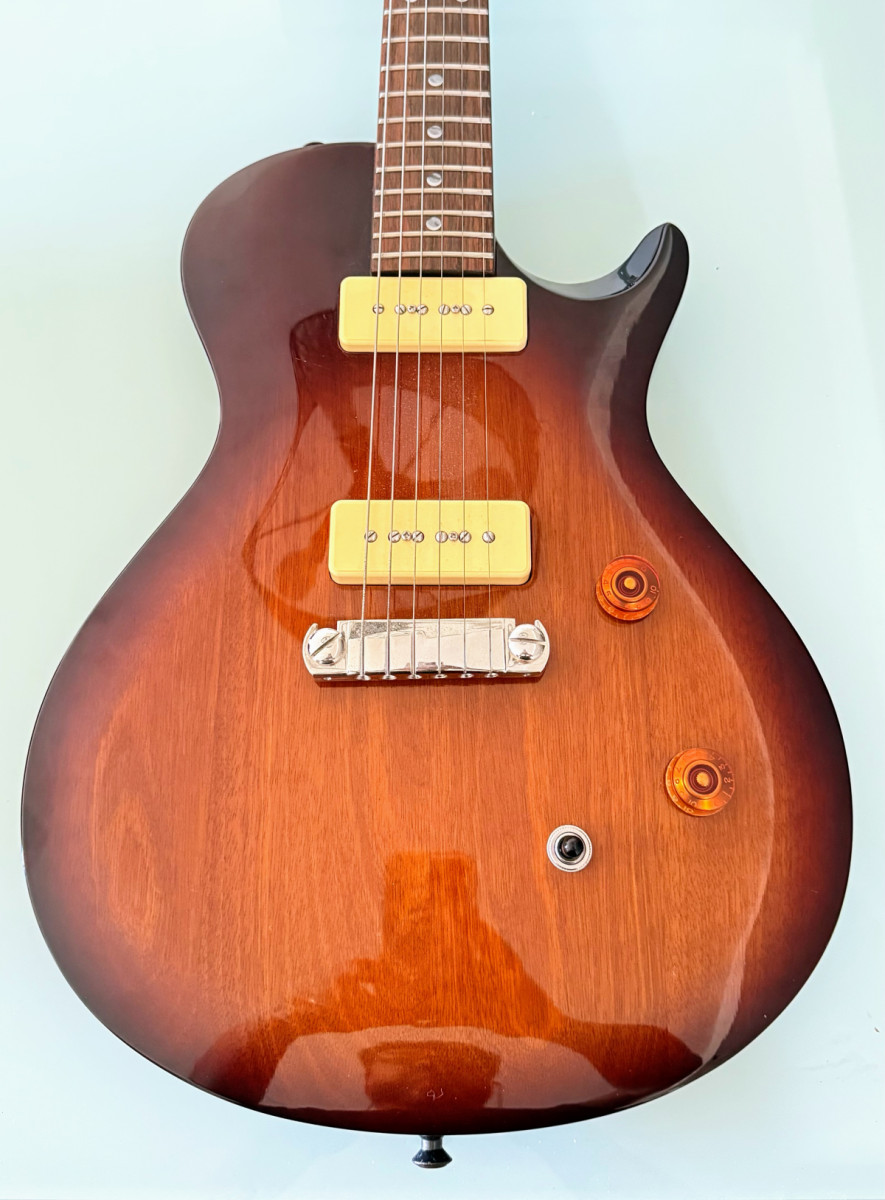 Esta es de buenas maderas y con una veta preciosa , fabricada en Korea y con dos P90 que suenan de miedo .