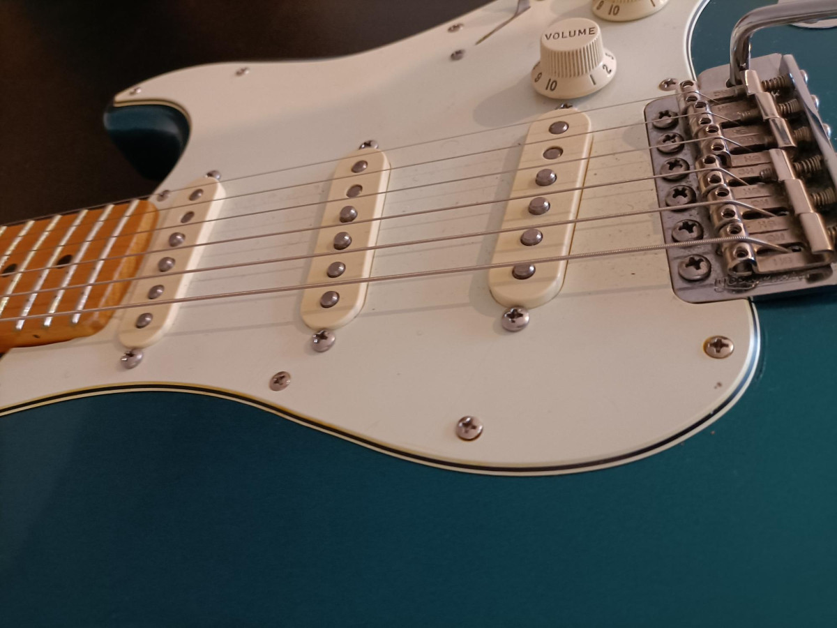 Electrónica: pastillas fender 57/62, switch 10 posiciones freeway, potenciómetros CTS con push/pull en volumen para treble / bleed conmutable, condensador orange drop, cableado interno de algodón