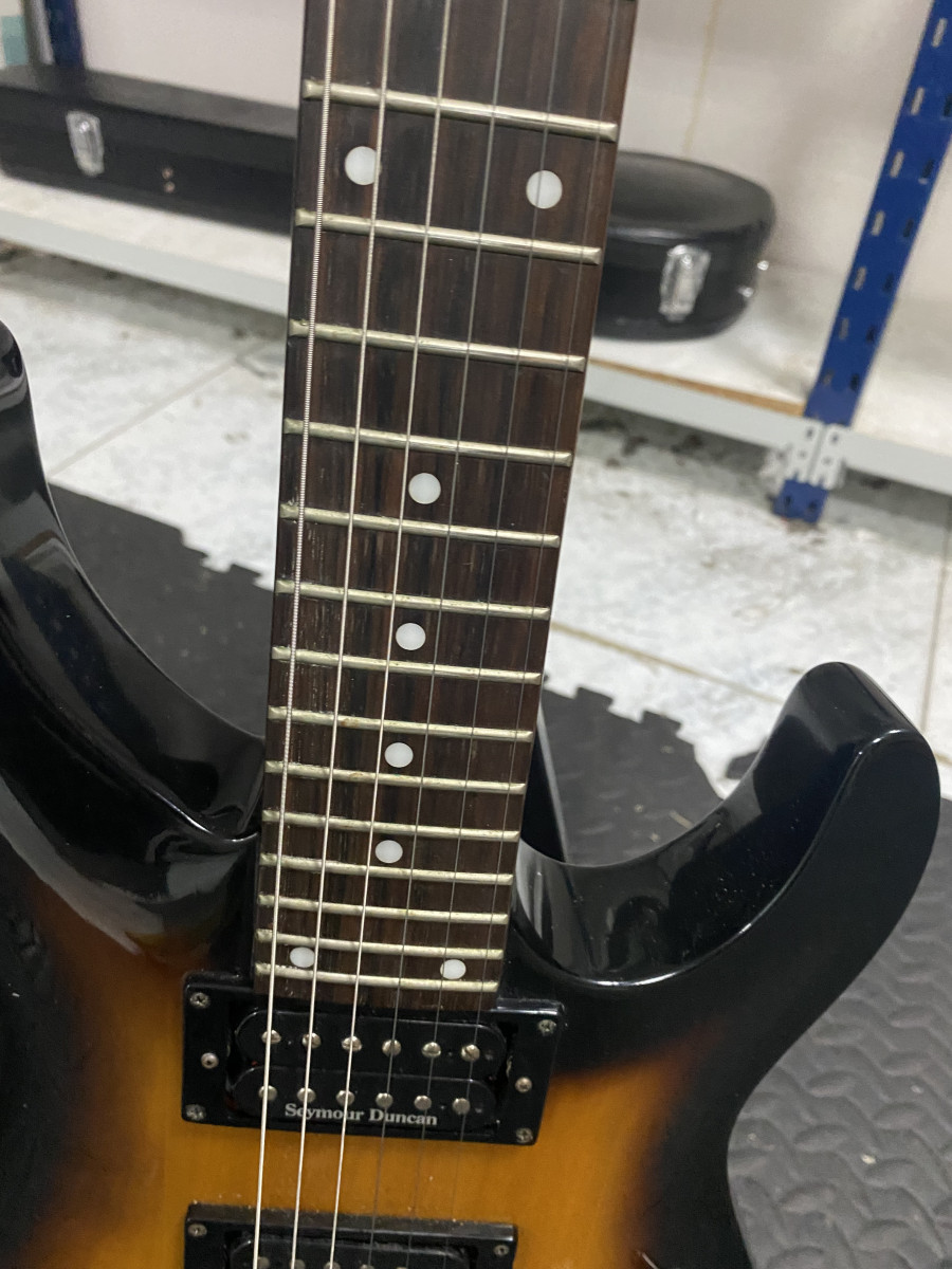 Si la marca no os suena, hay informacion por internet. Si no te importa el logo de la marca en la pala ,tiene mucha calidad, en su tiempo nueva valia 1200. Estas guitarras las fabricaban dos, que compraban los cuerpos en la fabrica de mayones en Polonia, y luego ponian ellos la electronica y demas.
