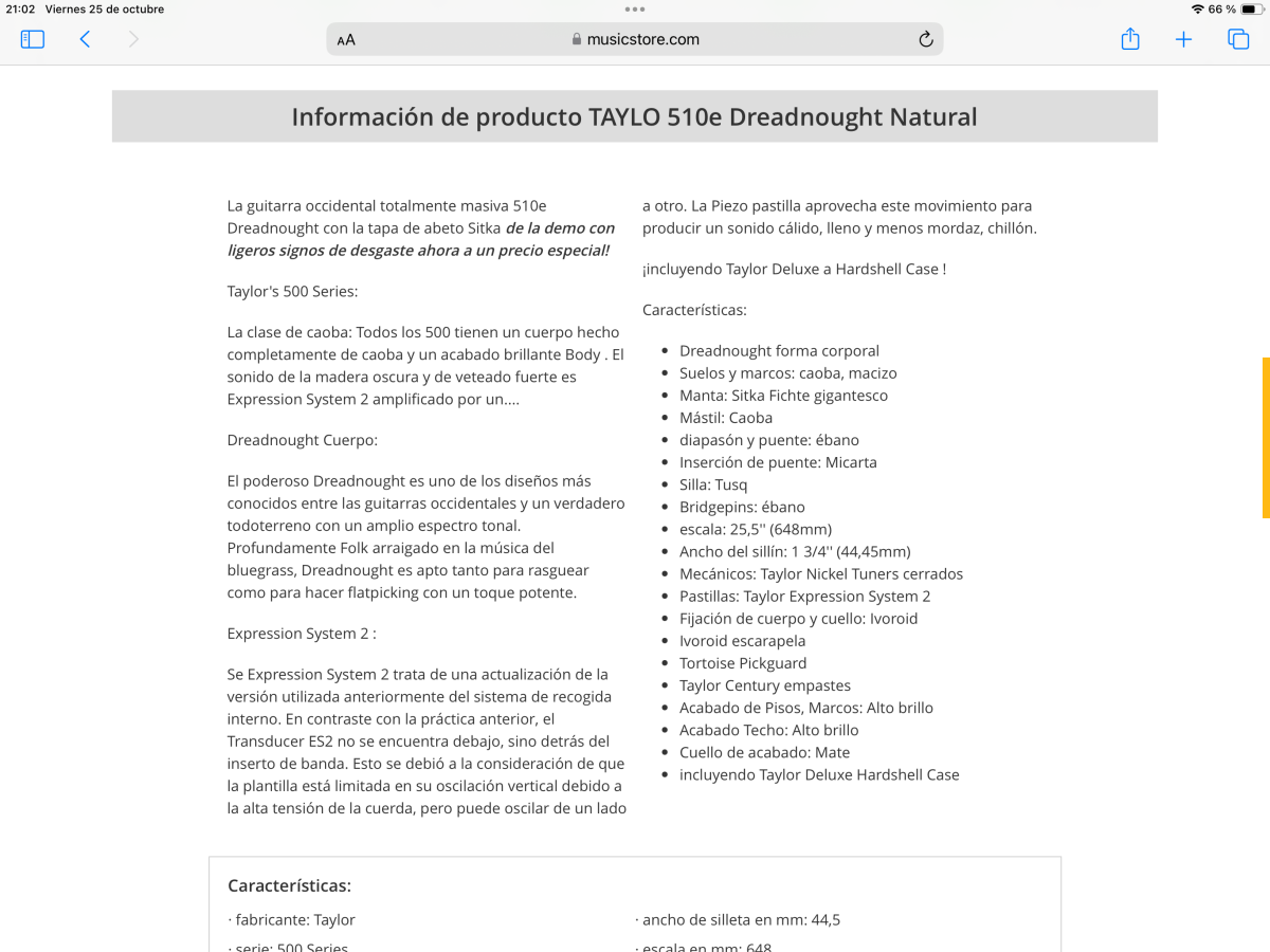 Venta guitarra Taylor 510 e, en perfecto estado, sin ningun signo visible de desgaste.