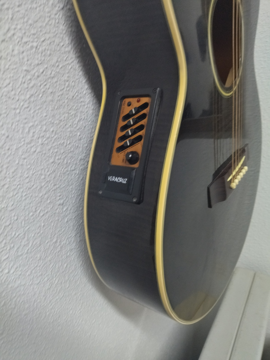 Vendo guitarra electroacústica Veracruz mod:755 TLK.Se le cambiaron la selleta del puente y del mástil por unas mejores .Lleva cuerdas 0,11 ,bastante nuevas y está recién hidratada y ajustada.Tambien regalo guitarra española Bross mod Grazalema,está bien curradita ,tiene un pequeño descorche en el mastil,pero para alguien que quiera empezar en el mundo de la guitarra ,es perfecta.Hace ya tres años que la tengo y me ha funcionado muy bien .Con fundita para cualquiera de las dos guitarras.