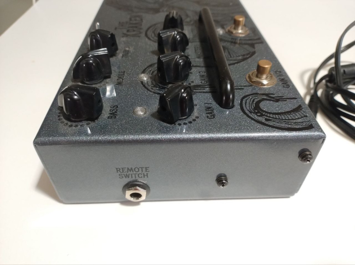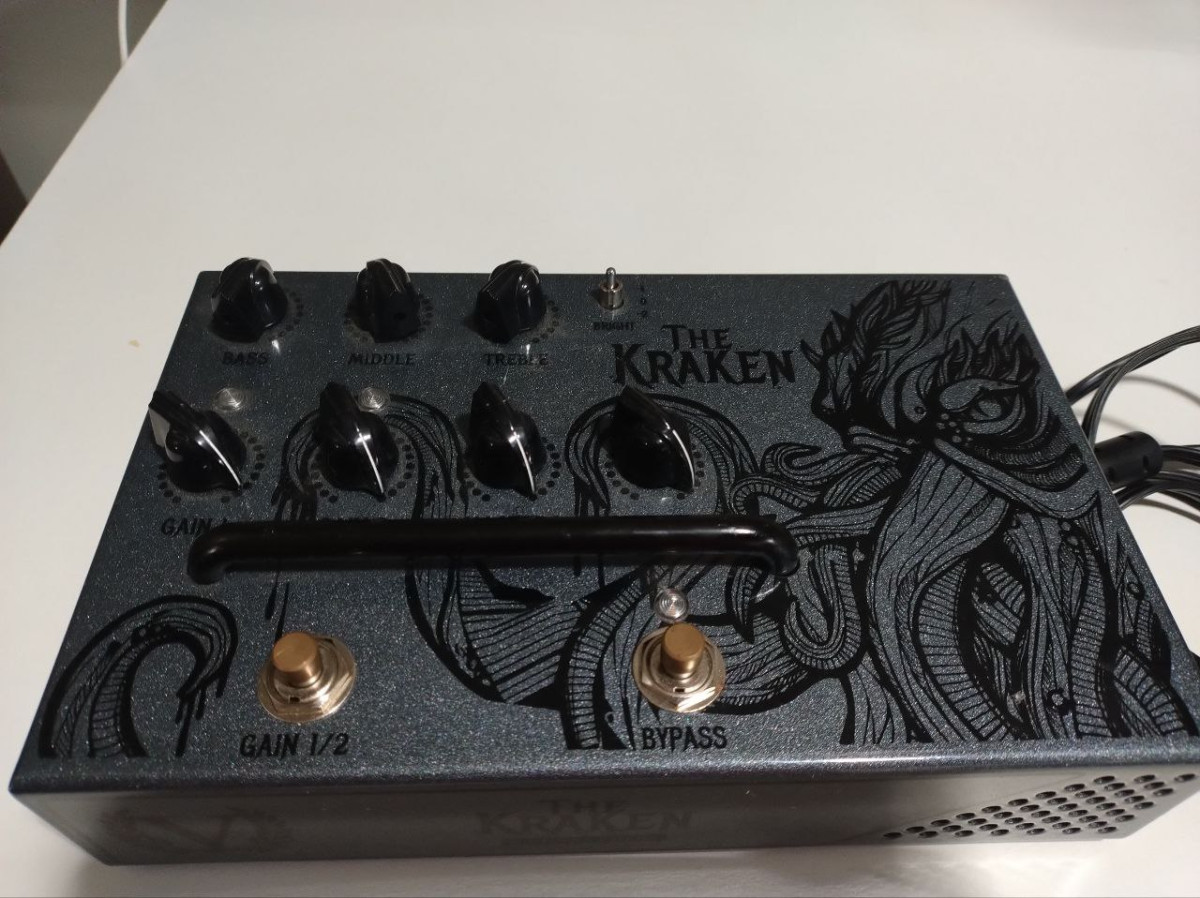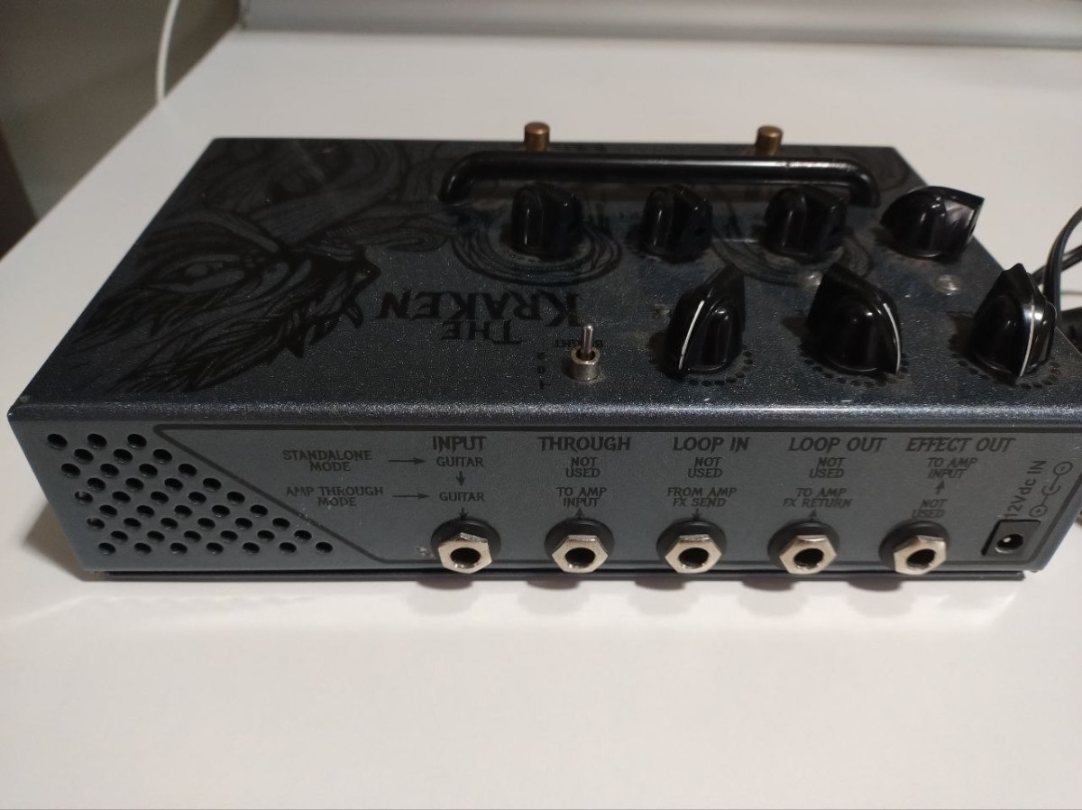 Desafortunadamente me toca sacar a la palestra, mi Victory Kraken V4, previo de válvulas definitivo en formato pedal. Compacto y 100% analógico, 2 canales con personalidad: verde, tono británico con carácter y dinámica; y rojo, high gain americano con fuerza para metal moderno. Permite sumar hasta 2 canales extra a tu ampli mediante loop de efectos.