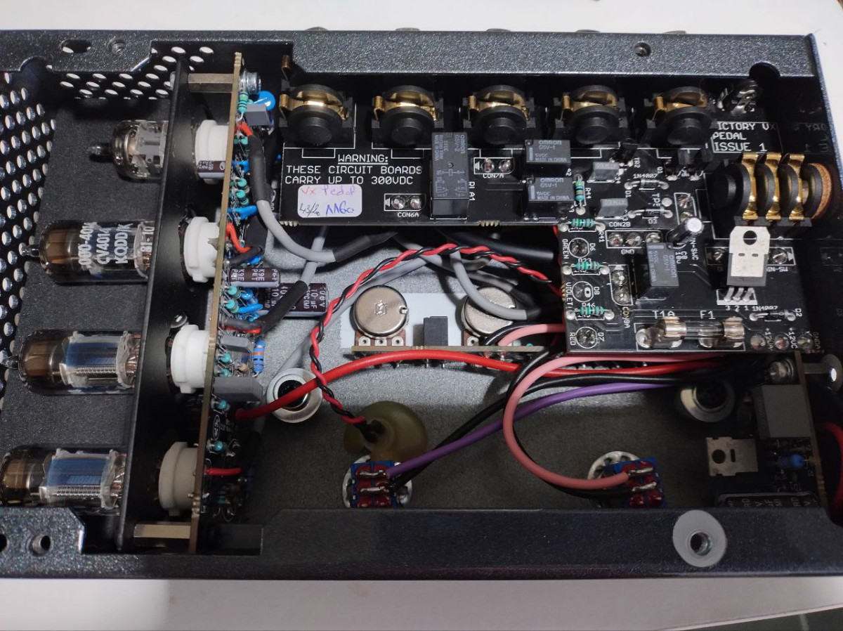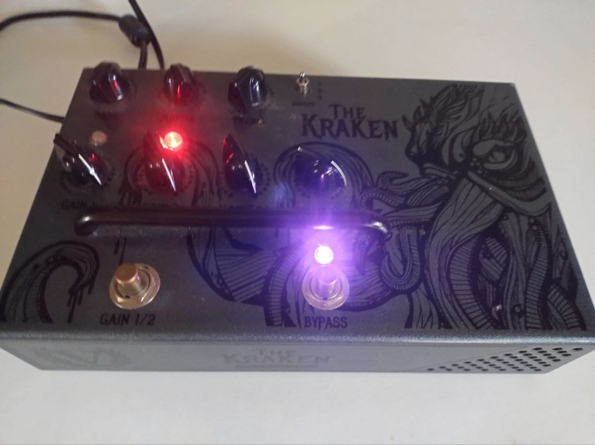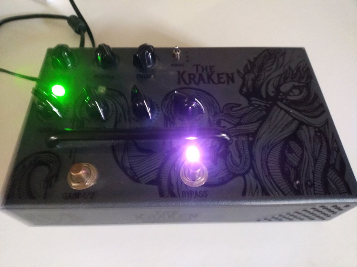 Desafortunadamente me toca sacar a la palestra, mi Victory Kraken V4, previo de válvulas definitivo en formato pedal. Compacto y 100% analógico, 2 canales con personalidad: verde, tono británico con carácter y dinámica; y rojo, high gain americano con fuerza para metal moderno. Permite sumar hasta 2 canales extra a tu ampli mediante loop de efectos.