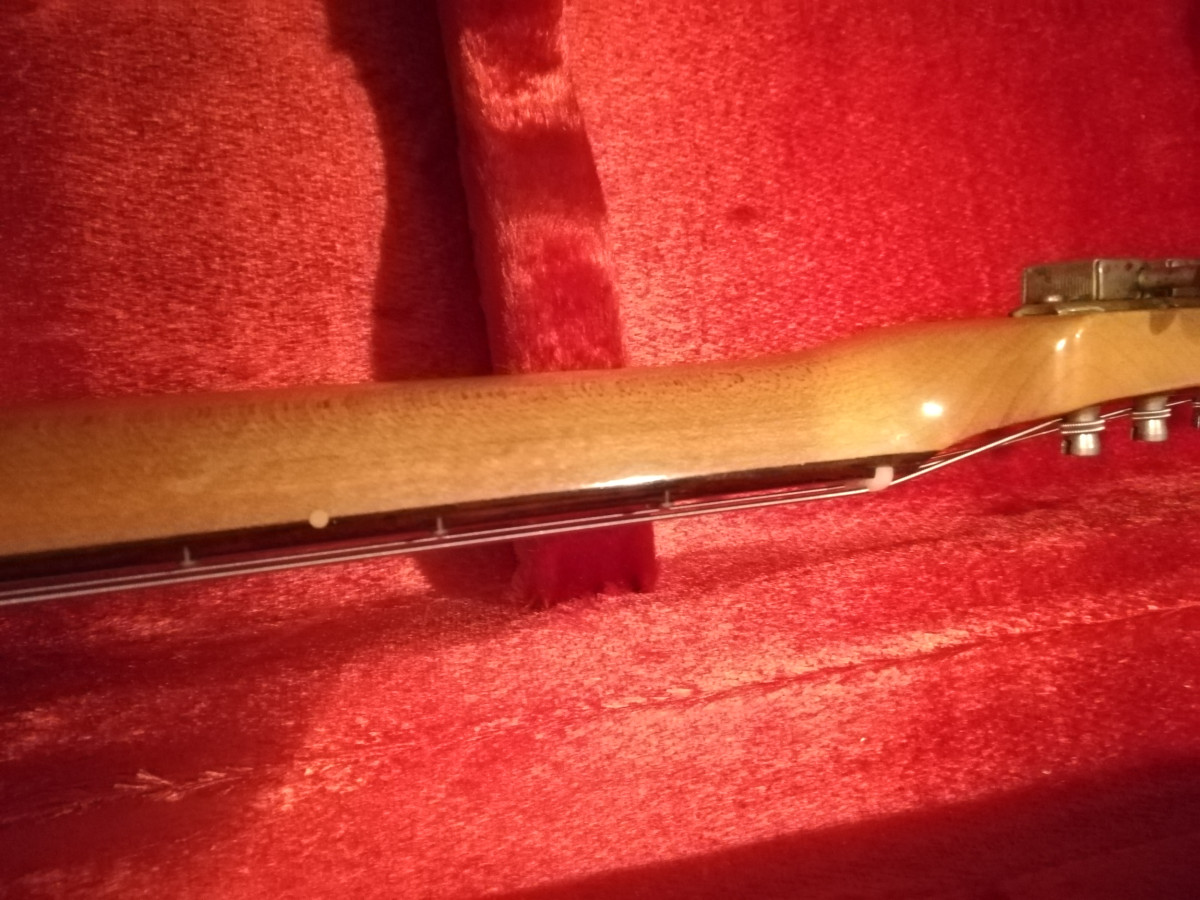 Es una guitarra muy muy ligera (en báscula me da 2,6Kg y por ahí andará) y con un sonido realmente bueno (con cuerpo y muy resonante). Muy buen tacto, lista para tocar ajustada con cuerdas 10-46. La guitarra está en muy buen estado. Sólo destacar: desgaste sobre el propio relic en algunas zonas. Uno de los tres cierres de la maleta está roto. Otro está tocado pero cierra, y el otro bien (se puede usar la maleta con total seguridad sin problemas).
