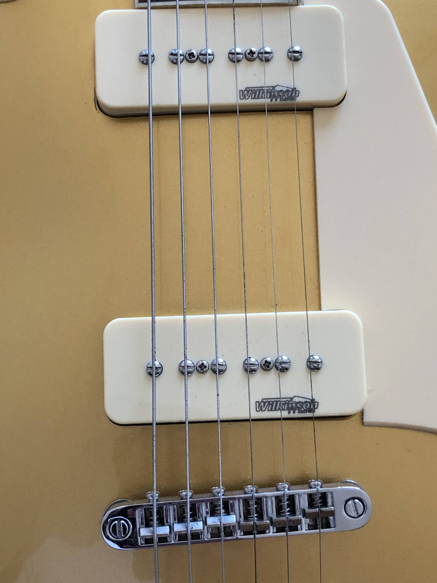 Guitarra Les Paul Vintage Icon V100 goldtop con pastillas p90. Herrajes y pastillas Wilkinson. Está ajustada por Luthier. NO CAMBIOS.