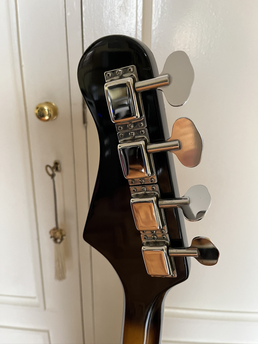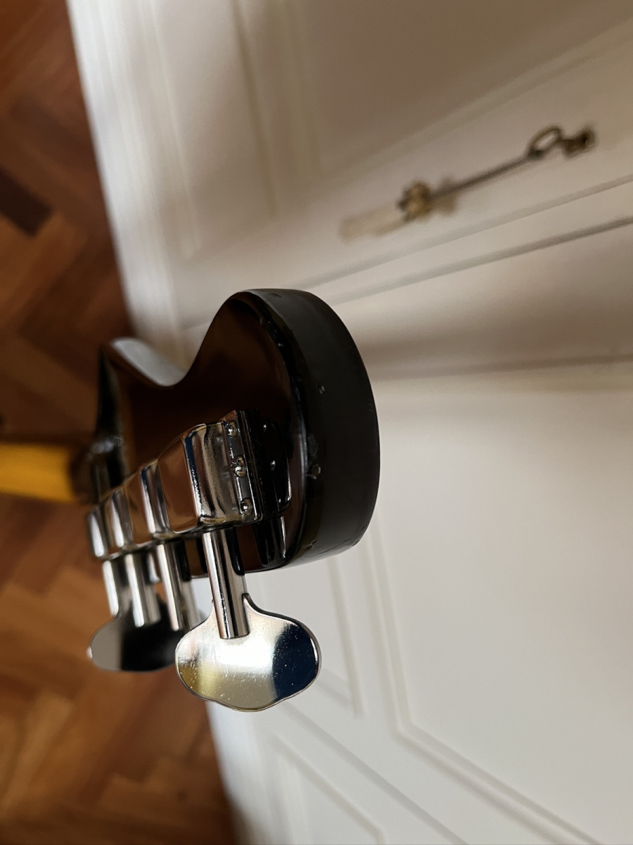 Es un bajo precioso y único, con un golpeador precioso imitando a carey.