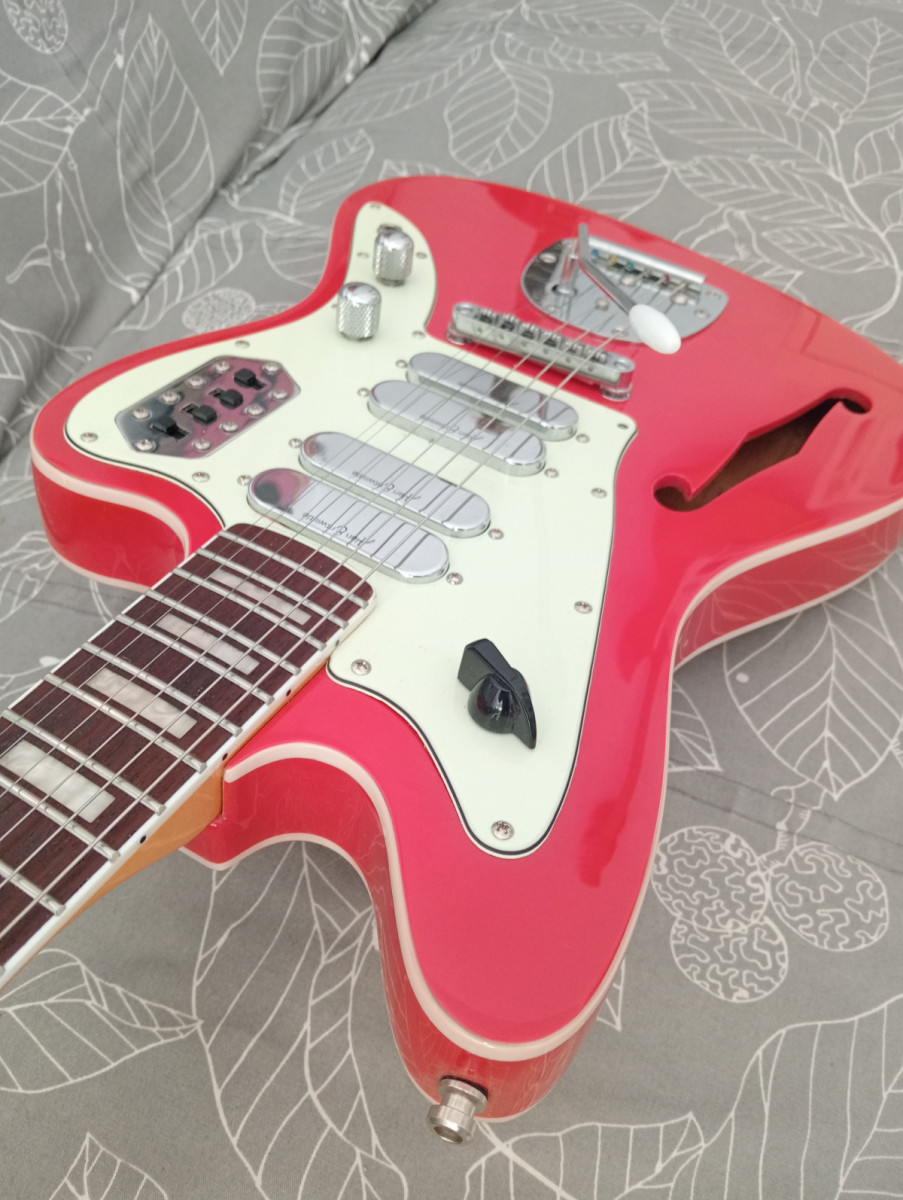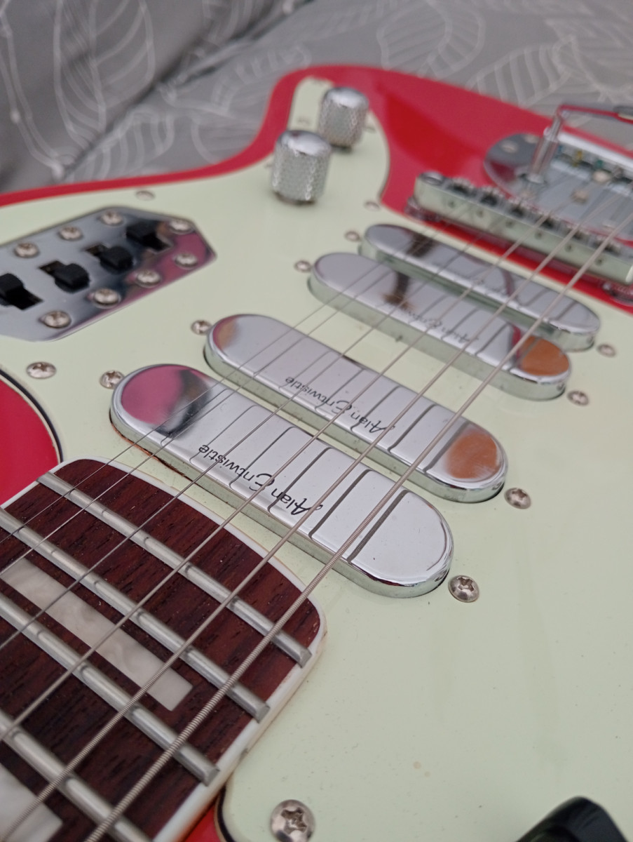 Ningún ruido, ningún golpe o dings. Infinidad de posiciones para las pastillas. Suena y se toca de maravilla. No desafina. El puente está bloqueado, no uso el trémolo. Solo hay que aflojar el tornillo de la placa del trémolo. Y por qué la vendo? Por cambiar. Siempre vendo o cambio y solo puedo tener 3. Por probar otras guitarras. Cambiaría por telecaster. Gracias