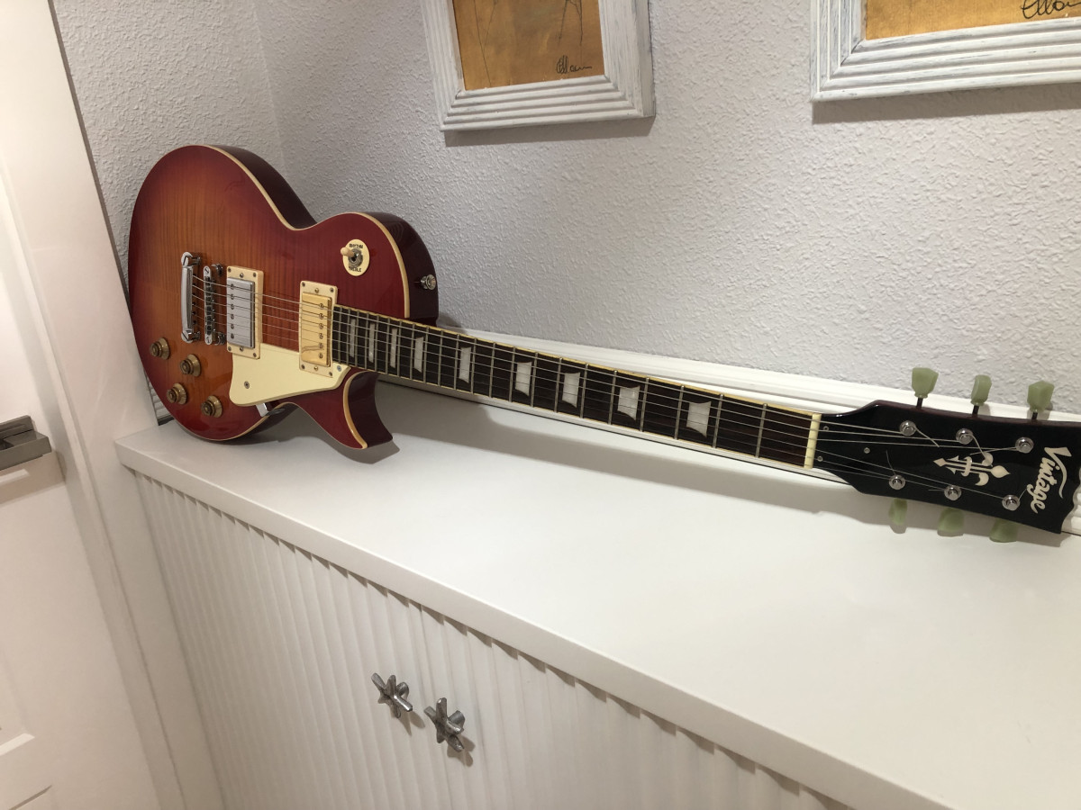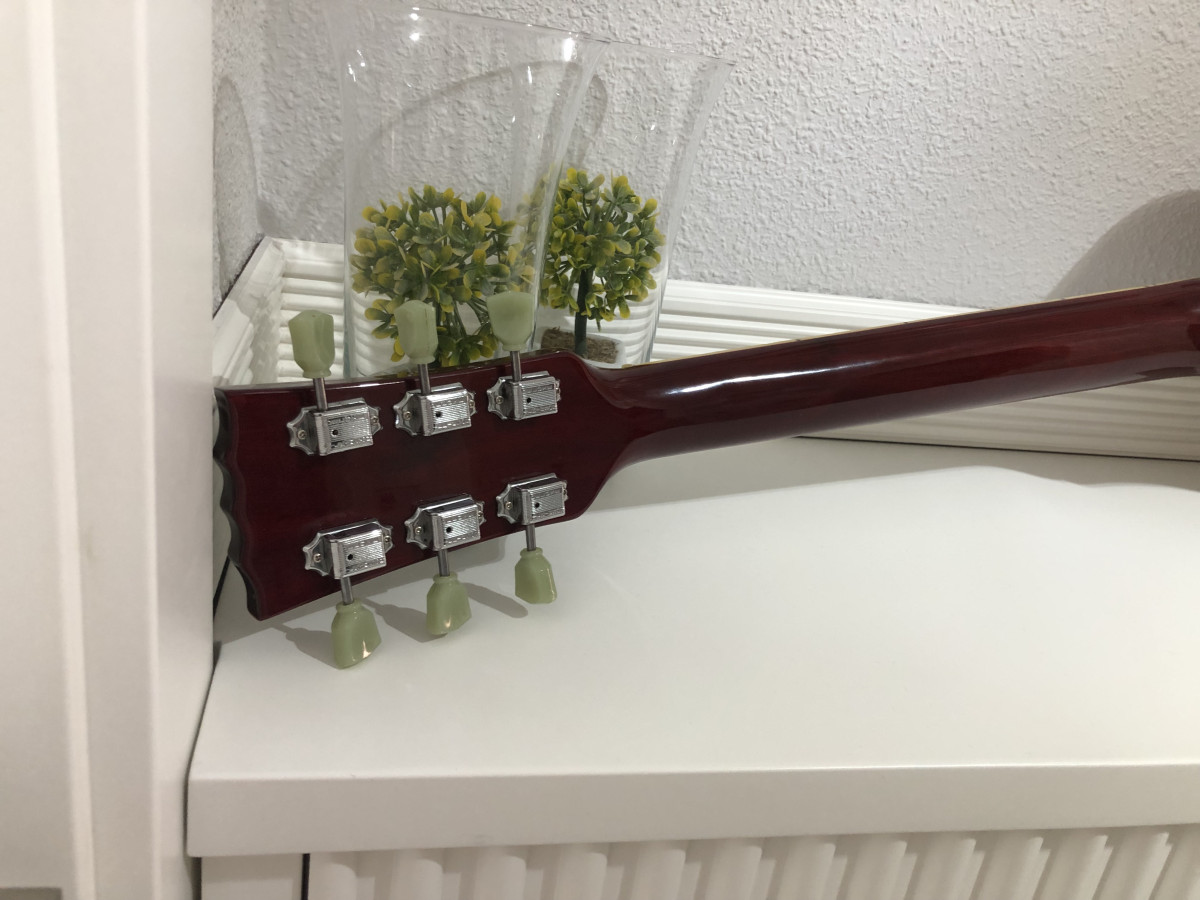 Me hice con ella en un cambio y se asemeja demasiado a otras guitarras que tengo , (cromo repetido).