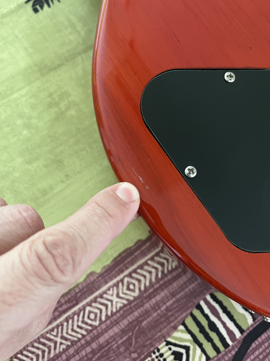 La guitarra está nueva, se entrega en estuche rígido y solo presenta un pequeño arañazo en la parte trasera que muestro en las fotos.