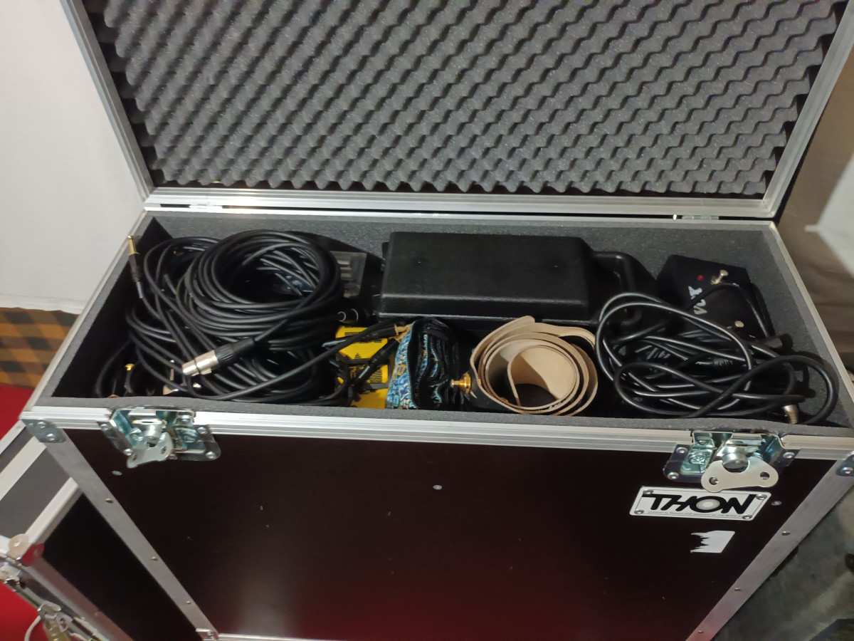 Se incluye Flight case a medida con cajón superior de almacenaje (los elementos que se ven en la foto, salvo el pedal Vox, NO están incluidos en la venta).