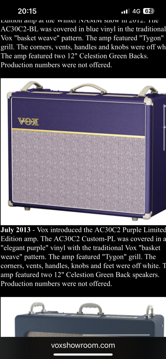 Vox AC30 C2. Edición Limitada Purple. En buen estado. Altavoces Celestion Green Back.