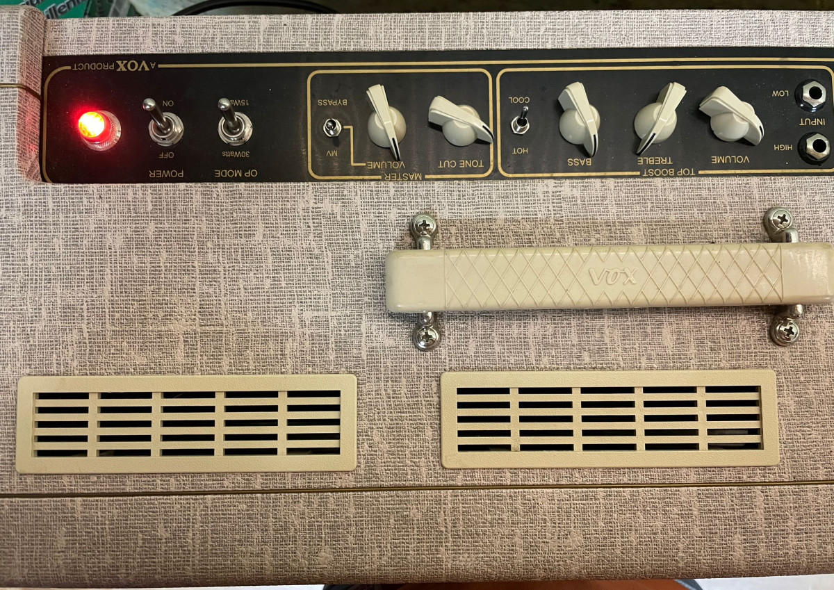 Vox AC30 Hand Wired de 30w usado sobre todo en el local de ensayo. Lo compré en este mismo foro en el 2014.La única cosa, Hace 2 semanas se le fundió el el led de encendido.