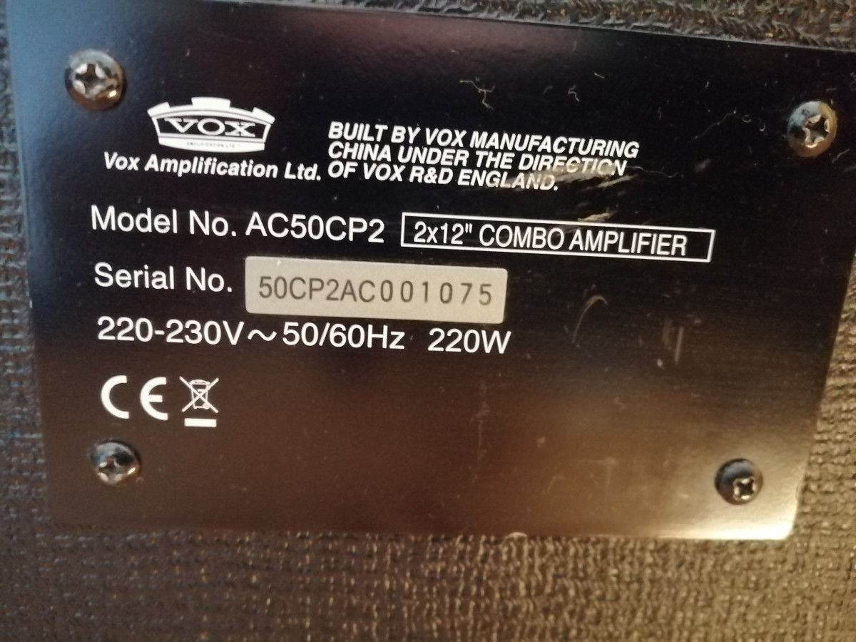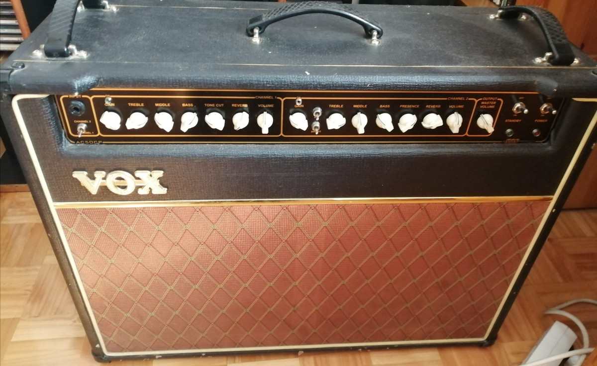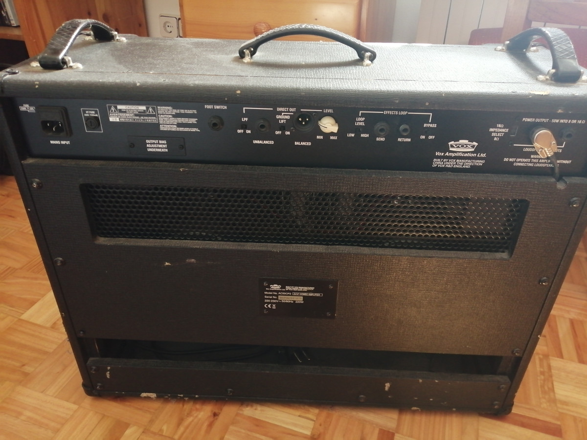 Amplificador a válvulas VOX AC50CP2. Está en buenas condiciones, aunque presenta algunos signos de uso (lo normal).