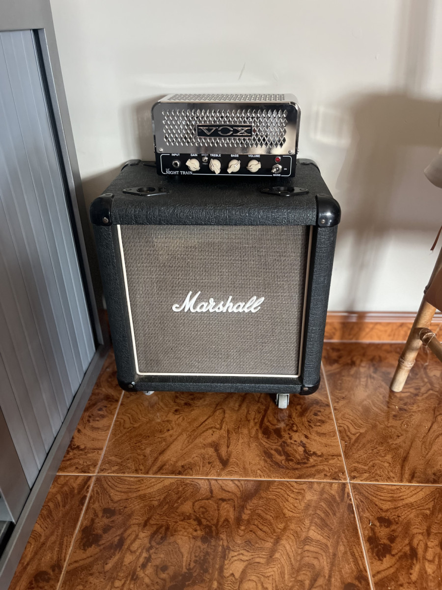 Combo compuesto por cabezal Vox Lil' Night Train NT2H con válvulas mesa boogie , y pantalla Marshall con altavoz celestino G10D-25 sonido espectacular tanto para casa como para estudio y directo … se envía a cualquier parte de la península