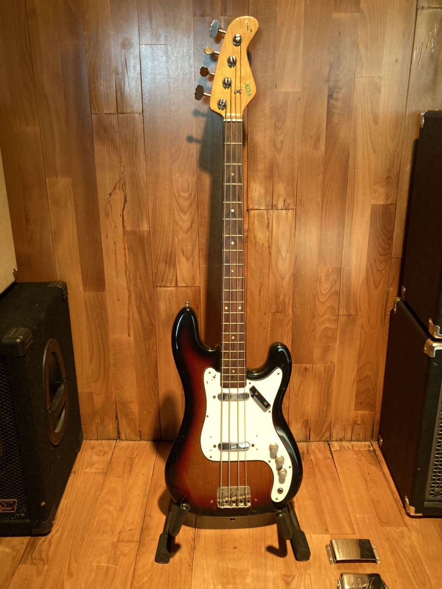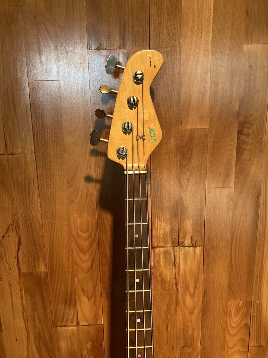 Bajo eléctrico Vox Symphonic Bass vintage original de 1970 de color Sunburst y la época JMI de Vox.