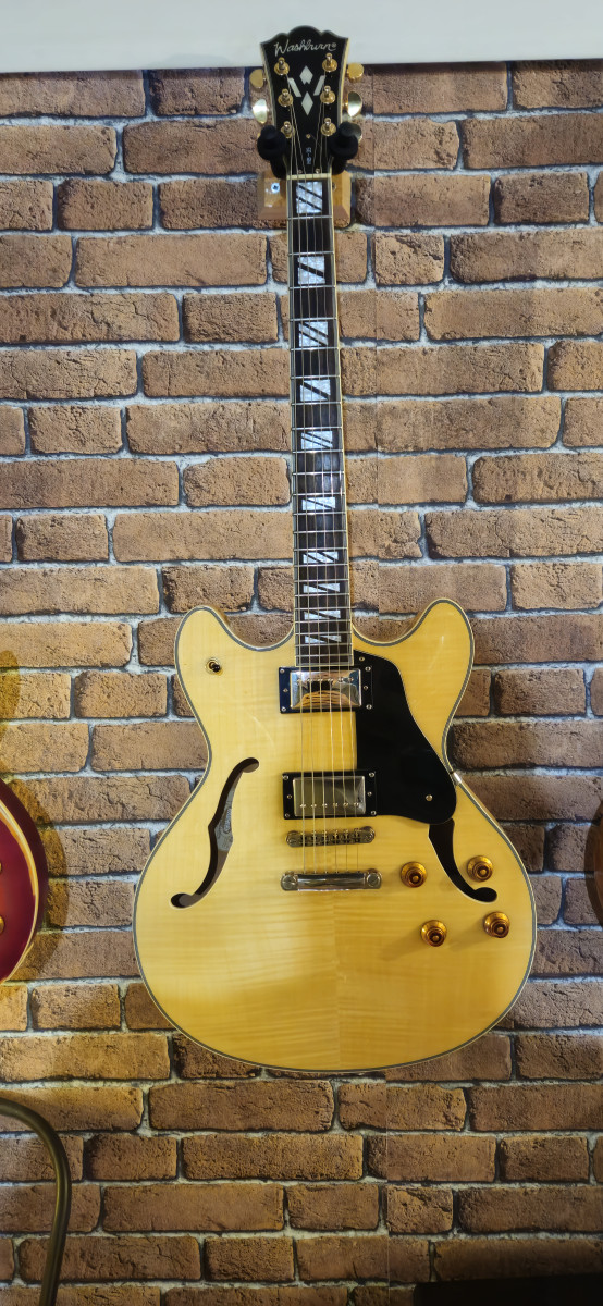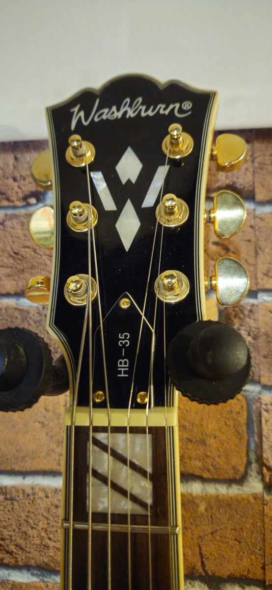 Guitarra de cuerpo semi hueco HB35 ligera y resonante con un un tono suave que la hace muy adecuada para Jazz, Blues o Rock. Presenta características de lujo como su tapa de arce flameado, los herrajes dorados, el clavijero exclusivo de Grover o los inlays perlados de abalone en forma de bloques divididos.