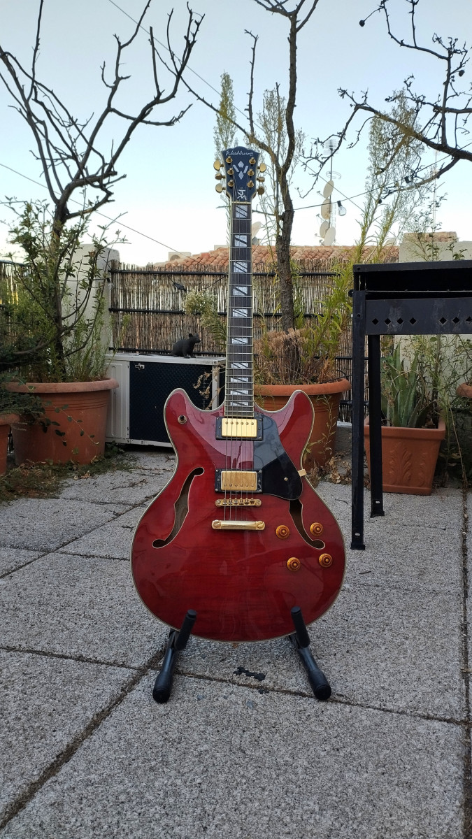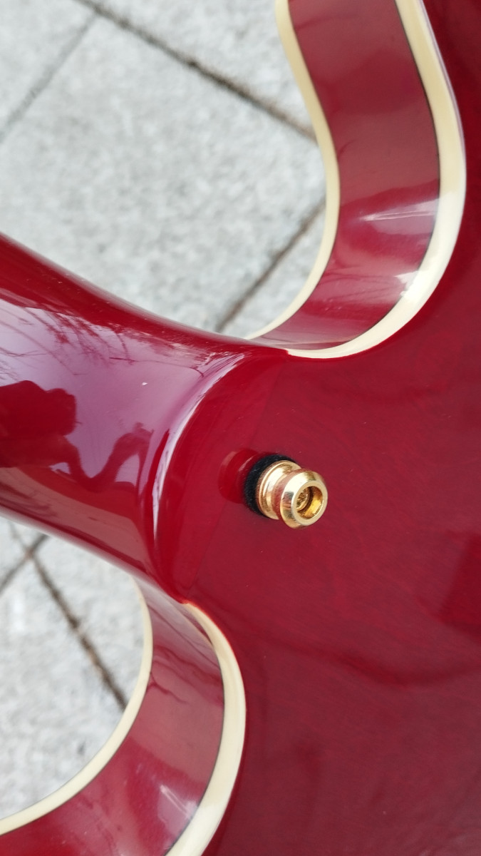 Cuerpo hueco. Tapa, aros y fondo de arce flameado.