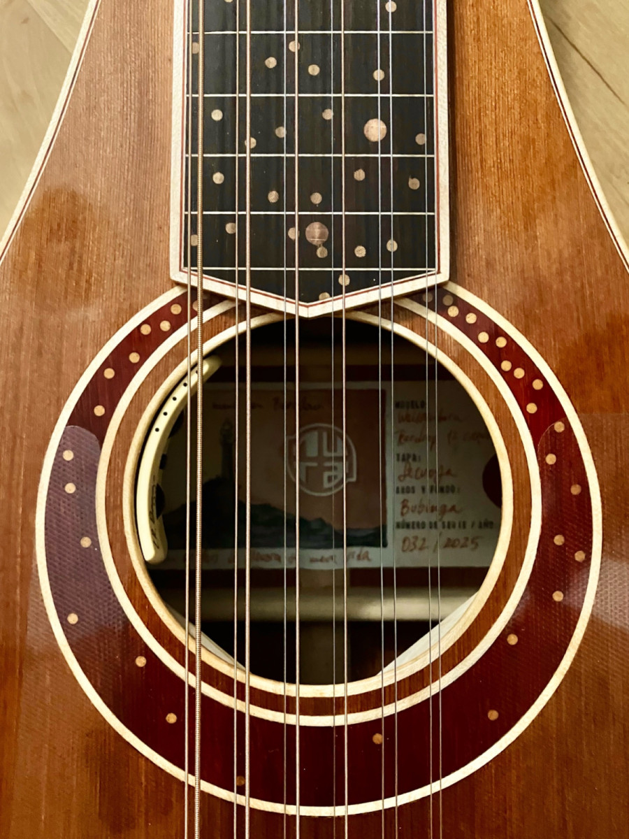 Vendo una guitarra Weissenborn electroacústica NURA teardrop de 12 cuerdas. Hecha completamente a mano por mí en Barcelona en 2025. Un instrumento verdaderamente único; no hay dos iguales. Nunca he visto otra Weissenborn teardrop de 12 cuerdas. Mi propio diseño, inspirado en las legendarias guitarras Weissenborn. Totalmente hecha a mano, sin piezas prefabricadas ni plásticos. Hecha íntegramente con maderas macizas. Todos los materiales han sido seleccionados personalmente. Para quienes disfrutan de la guitarra slide, ya sea lap steel, Weissenborn o resonador, este instrumento ofrece un sonido completamente nuevo y distintivo, como ningún otro instrumento de su clase. Las 12 cuerdas proporcionan una potencia y proyección increíbles, además de una rica gama tonal. La tapa es de secuoya, una de las maderas más exclusivas y preciadas para la construcción de guitarras debido a su sonido y apariencia oscura. El fondo y los aros son de bubinga, una madera africana exótica muy apreciada por los luthiers y muy rara. Diapasón de palisandro con incrustaciones inspiradas en el cielo estrellado. Puente de palisandro con clavijas de ébano. Ribete de arce y palo rojo. Roseta y moldura de base de palo rojo y arce a juego con el diseño de estrellas del diapasón. Pala de bubinga. Selletas de hueso. Clavijero Grover mini. Acabado Tru-oil. Golpeador electrostático transparente. Incluyo una barra slide y un juego de cuerdas adicional. Lleva instalada una pastilla LR Baggs Anthem, la mejor pastilla disponible para guitarras acústicas, con un piezoeléctrico bajo la selleta del puente y un micrófono interno, valorada en más de 350 €. Incluyo un estuche rígido hecho a mano en España específicamente para este instrumento. Puedes probarla sin compromiso en mi taller de Barcelona. Más información en el canal de YouTube de Nura Guitars, en Instagram @nura_guitars o en la página web.