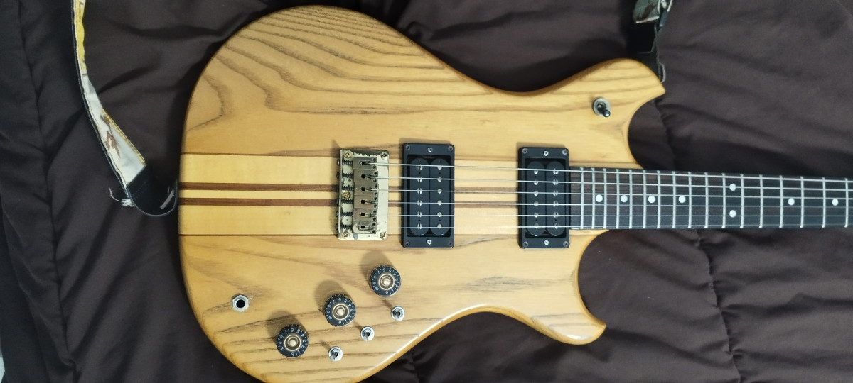 La Westone Thunder 1A de 1982 es una guitarra eléctrica hecha en Japón por Matsumoku con un cuerpo de fresno, arce y nogal laminados, mástil de arce de 3 piezas, diapasón de palo de rosa y escala de 24.75 pulgadas. Presenta pastillas humbucker HF450, controles de volumen y tono, selector de 3 vías, conmutador de coil-tap y control de ecualizador activo (requiere 2 baterías de 9V). Su hardware es de latón, incluyendo las perillas, la cejuela y el puente, y posee un sistema de encordado a través del cuerpo.