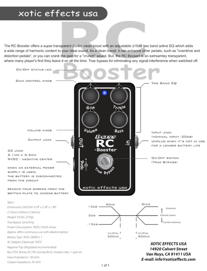 - Boost muy transparente, que realza el timbre natural del bajo.
