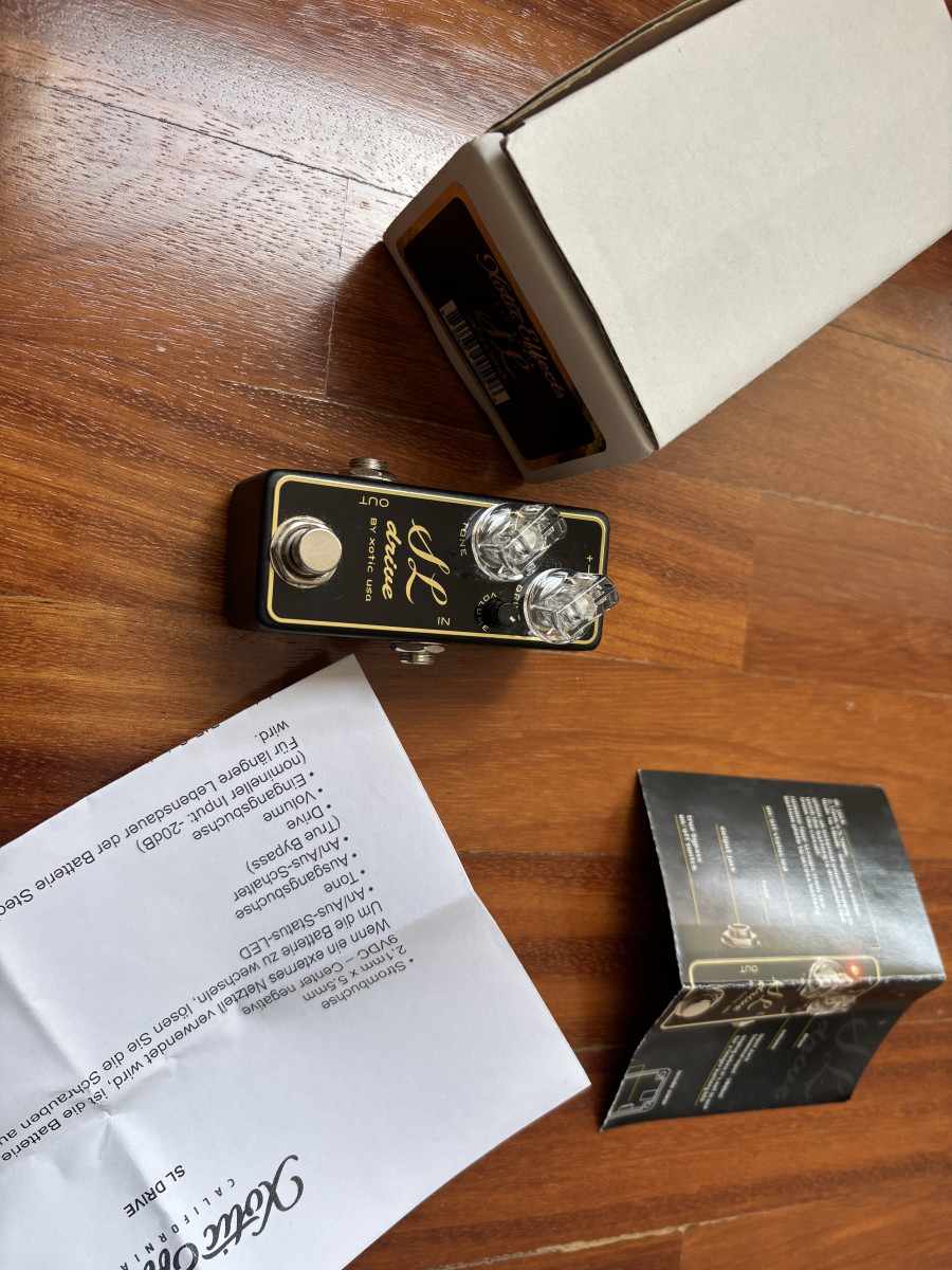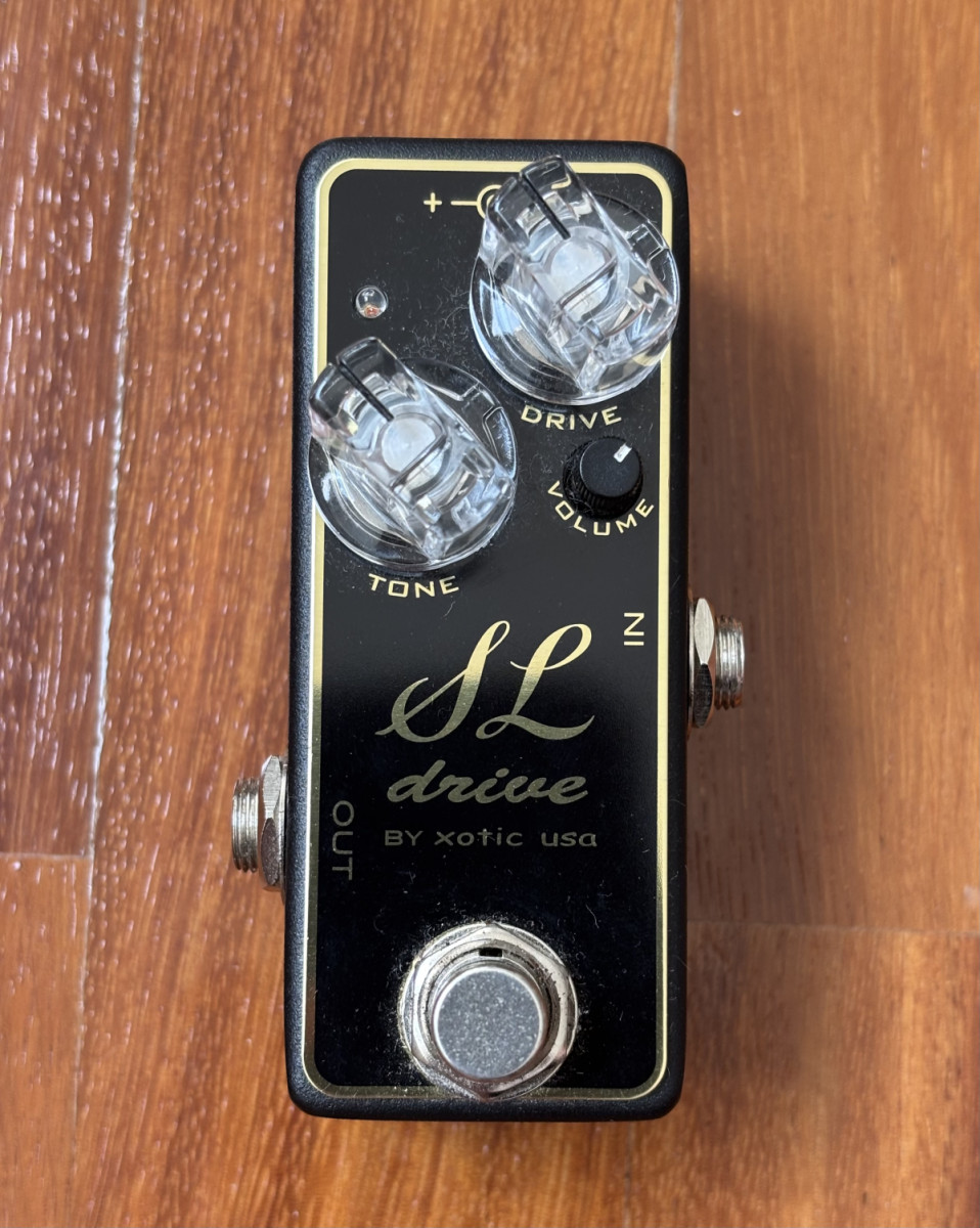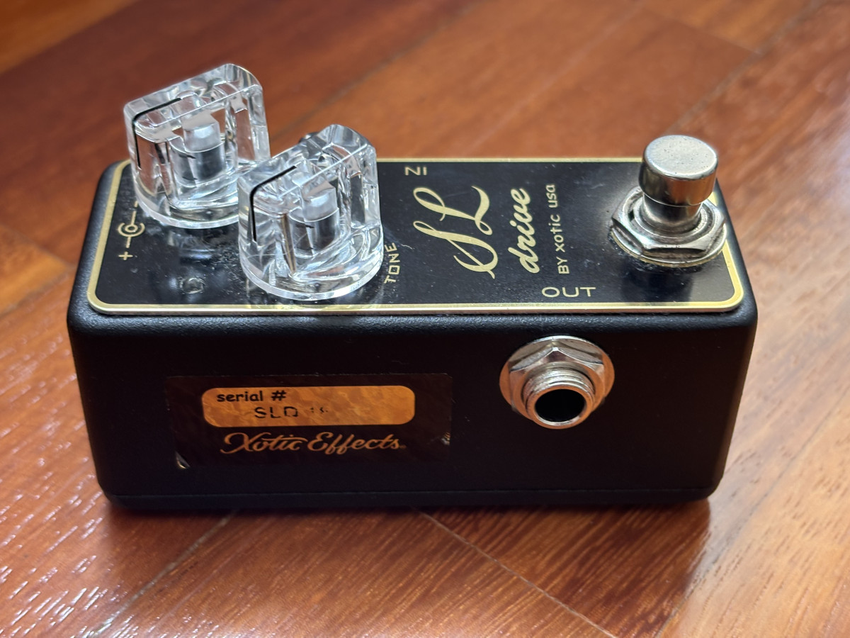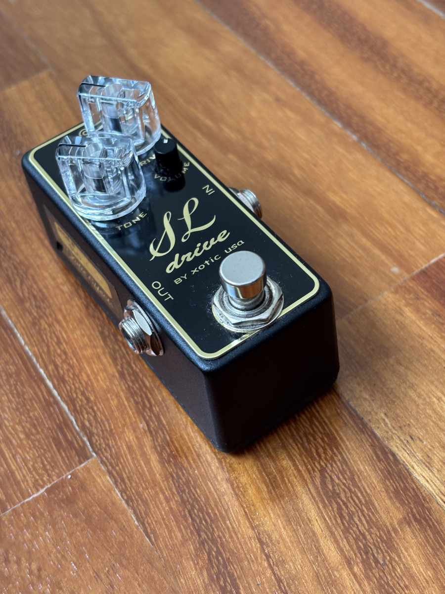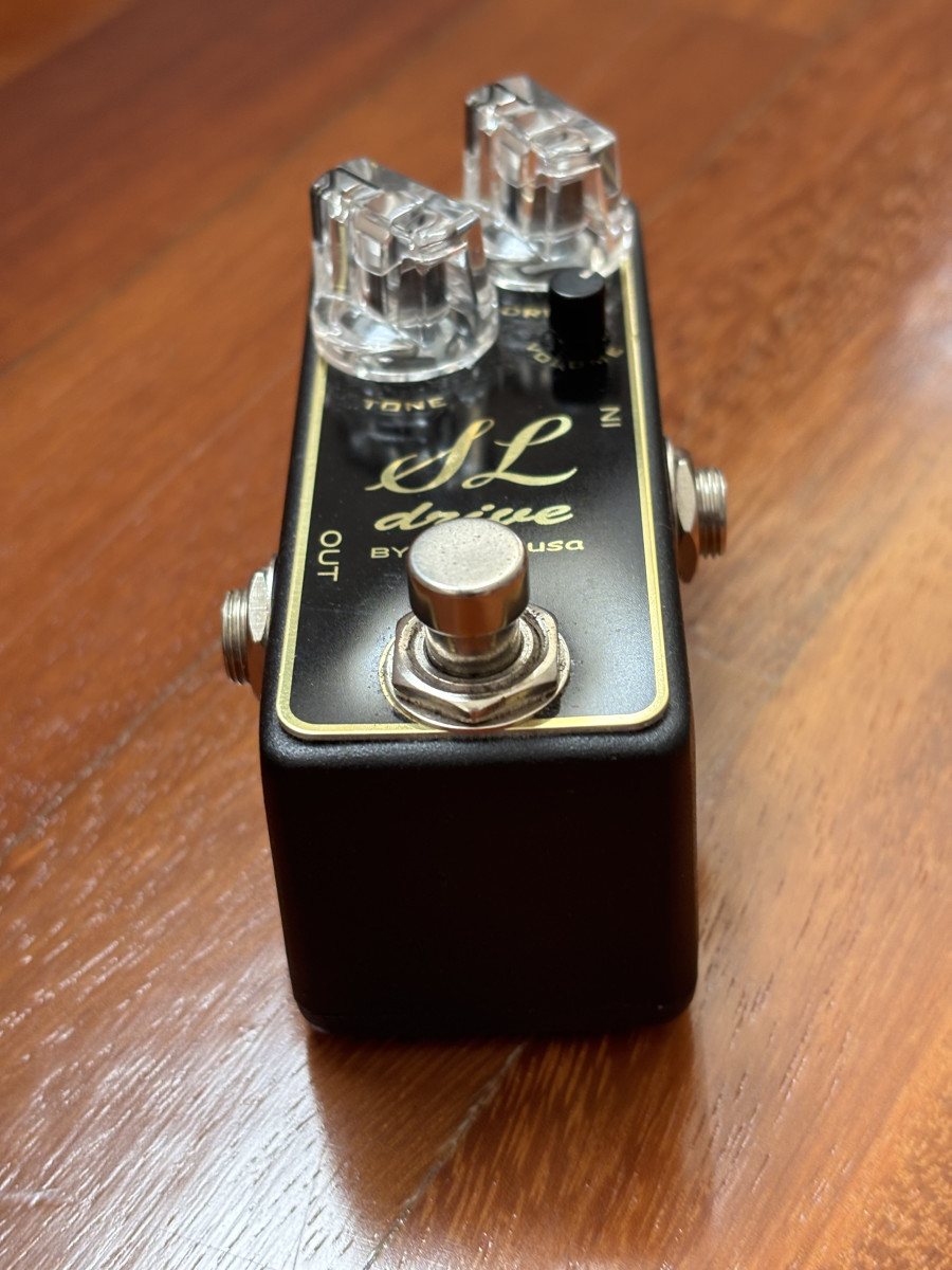 Se trata del “SL drive”. Es de un tipo de pedales conocidos como Amp-In-A-Box, ya que recrean el sonido de un amplificador determinado, en este caso, de los Marshall SuperLead y SuperBass. Tiene unos dipswitches internos que te permiten una configuración más parecida a un modelo de amplificador u otro.