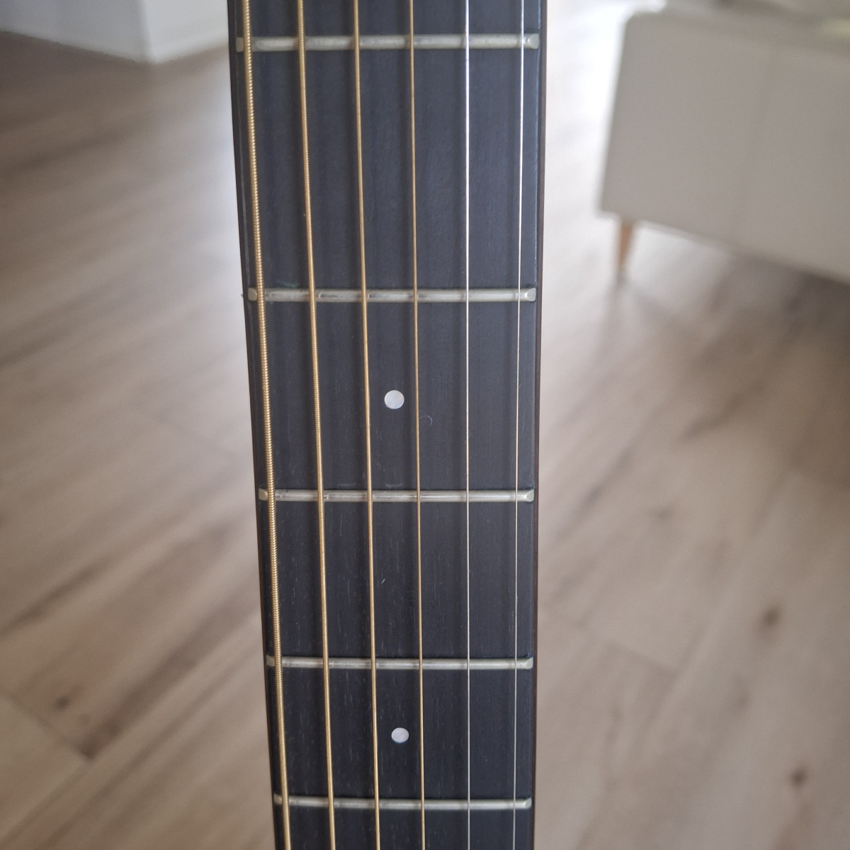 Sonido potente y cálido gracias a la tapa maciza de abeto Sitka con tratamiento A.R.E. (Acoustic Resonance Enhancement) y aros/fondo de caoba maciza.