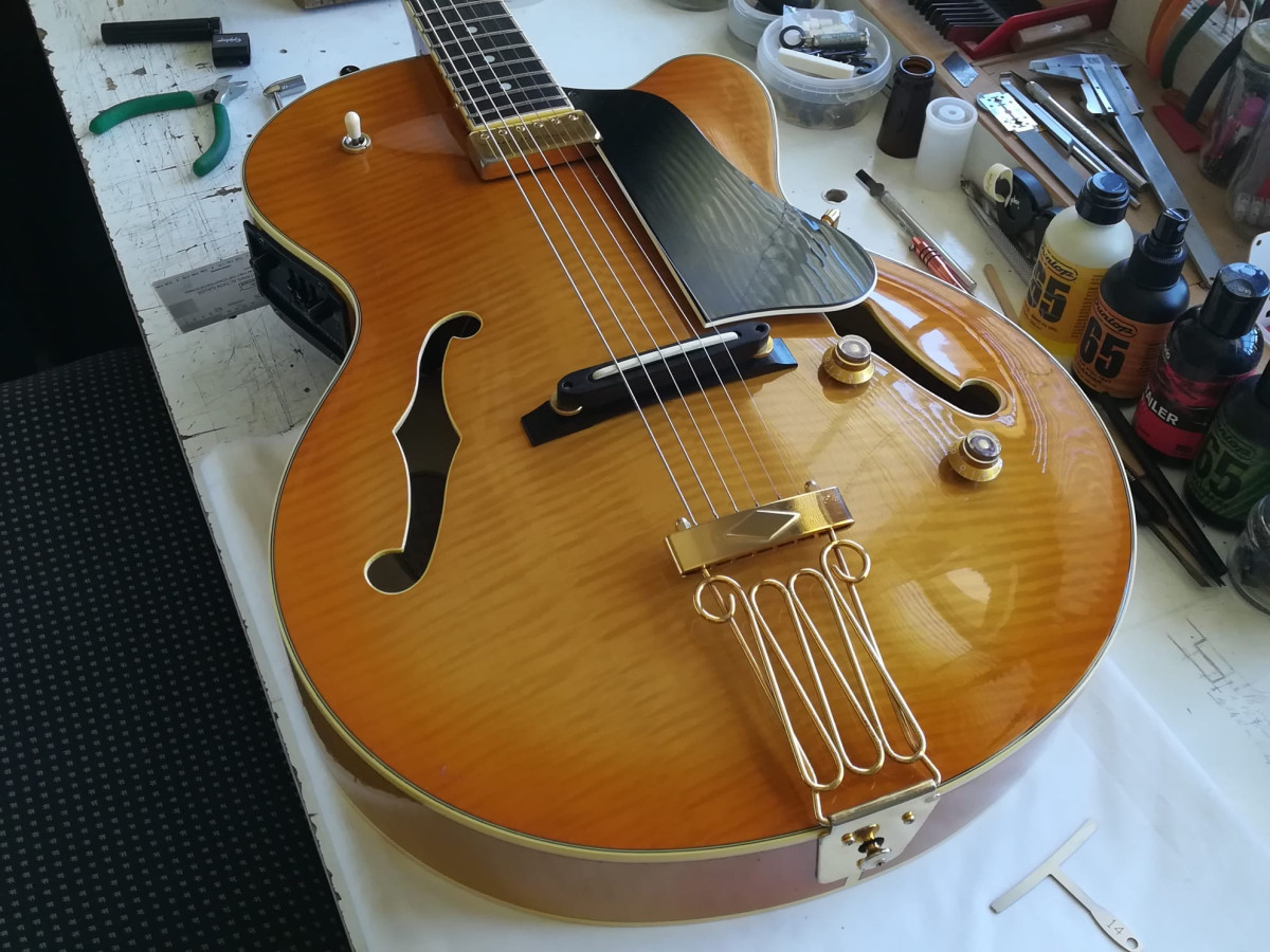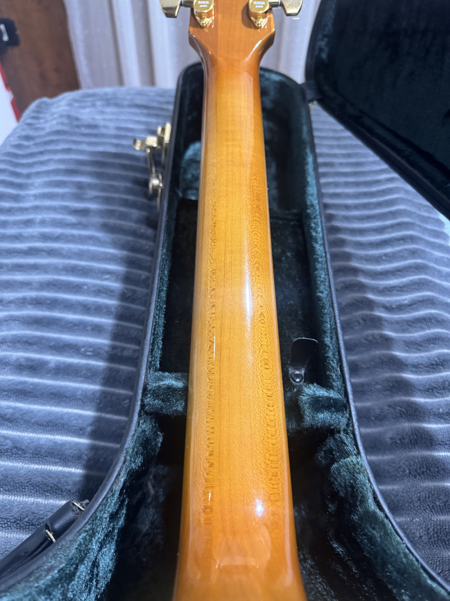 Una verdadera belleza y difícil de ver en este color con mucha pena la sacó a la venta , pero me reservo el derecho de retirarla ya que aún tengo mis dudas !! Recién ajustada y cambio de cuerdas !!