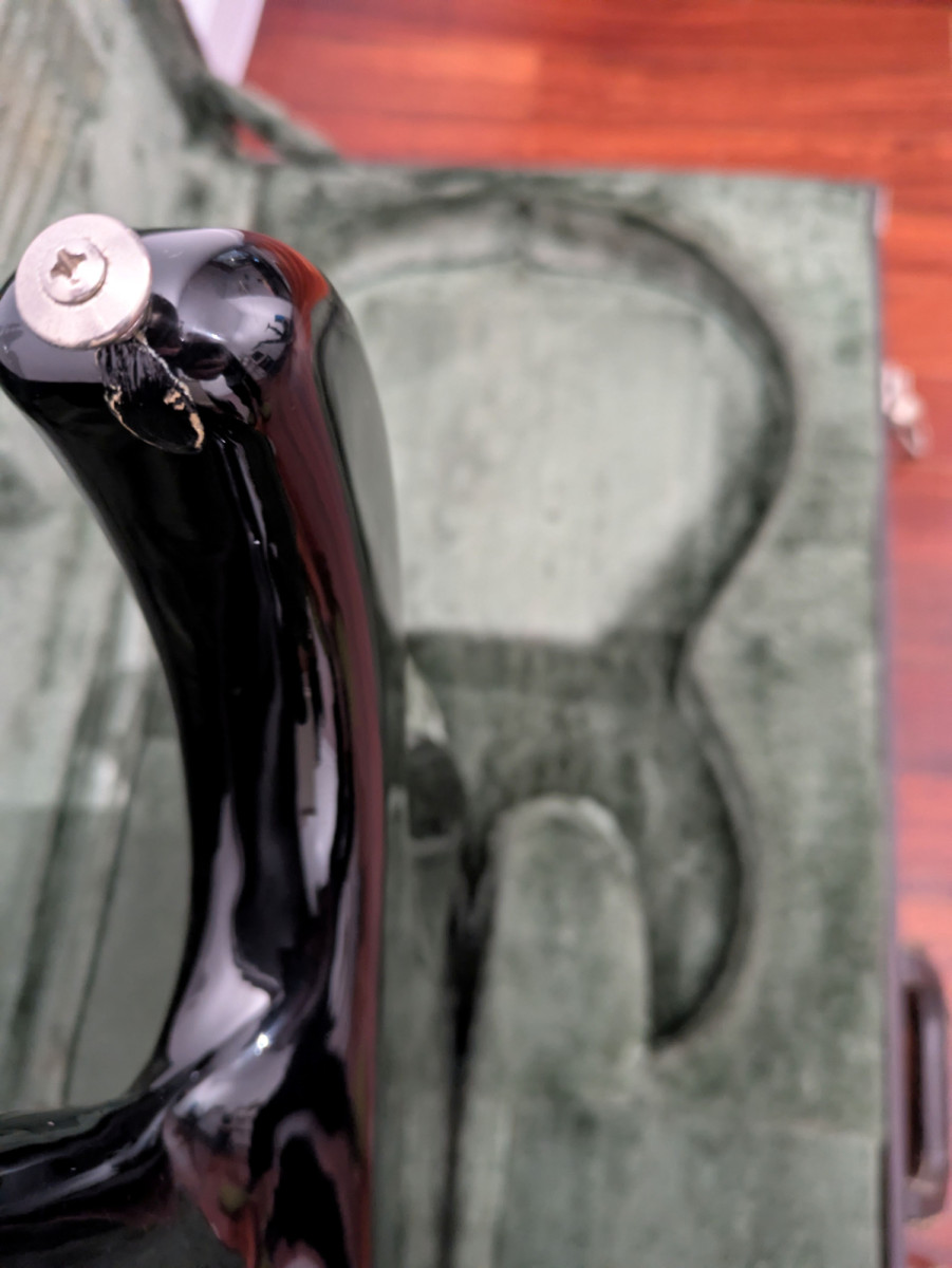 Se compró con una reparación en un enganche de la correa delantero que se muestra en las fotografías, también tiene una pequeña muesca en la parte trasera del mástil a la altura de la nuez.