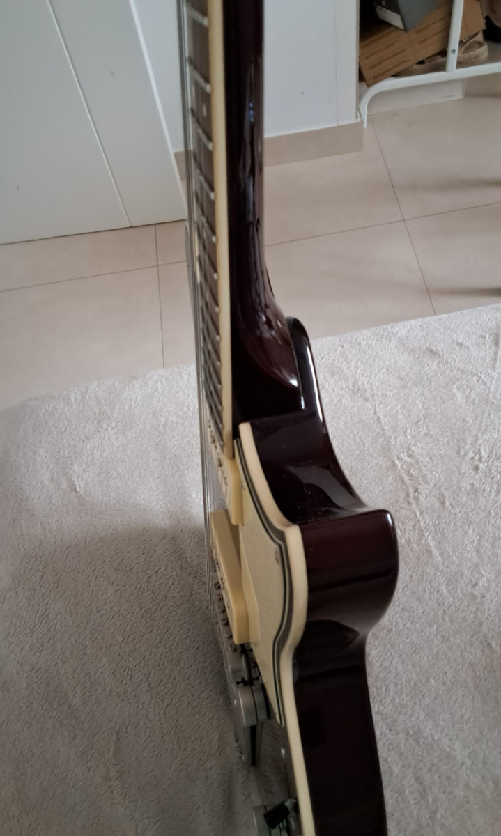 Muy buena construcción. Pastillas P90 lo que le dá un sonido espectacular.