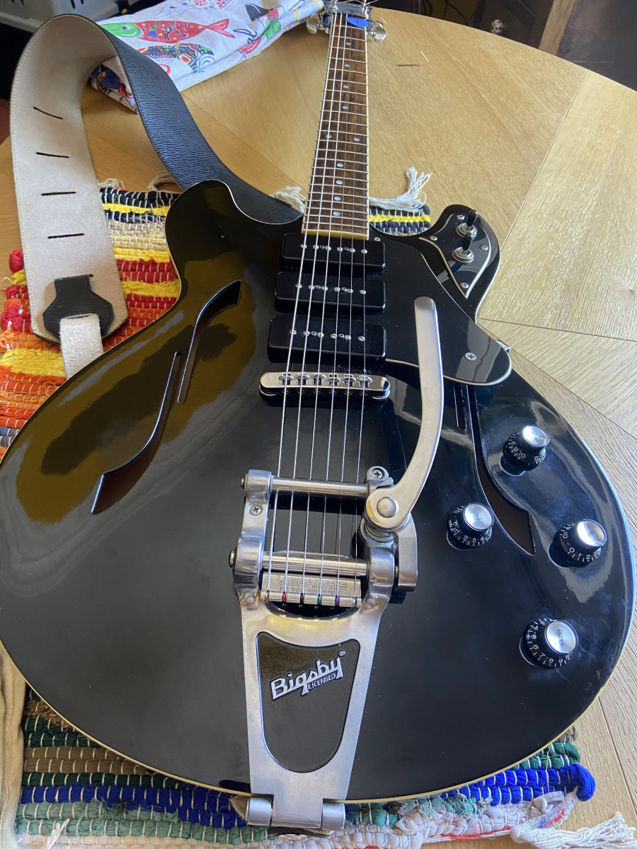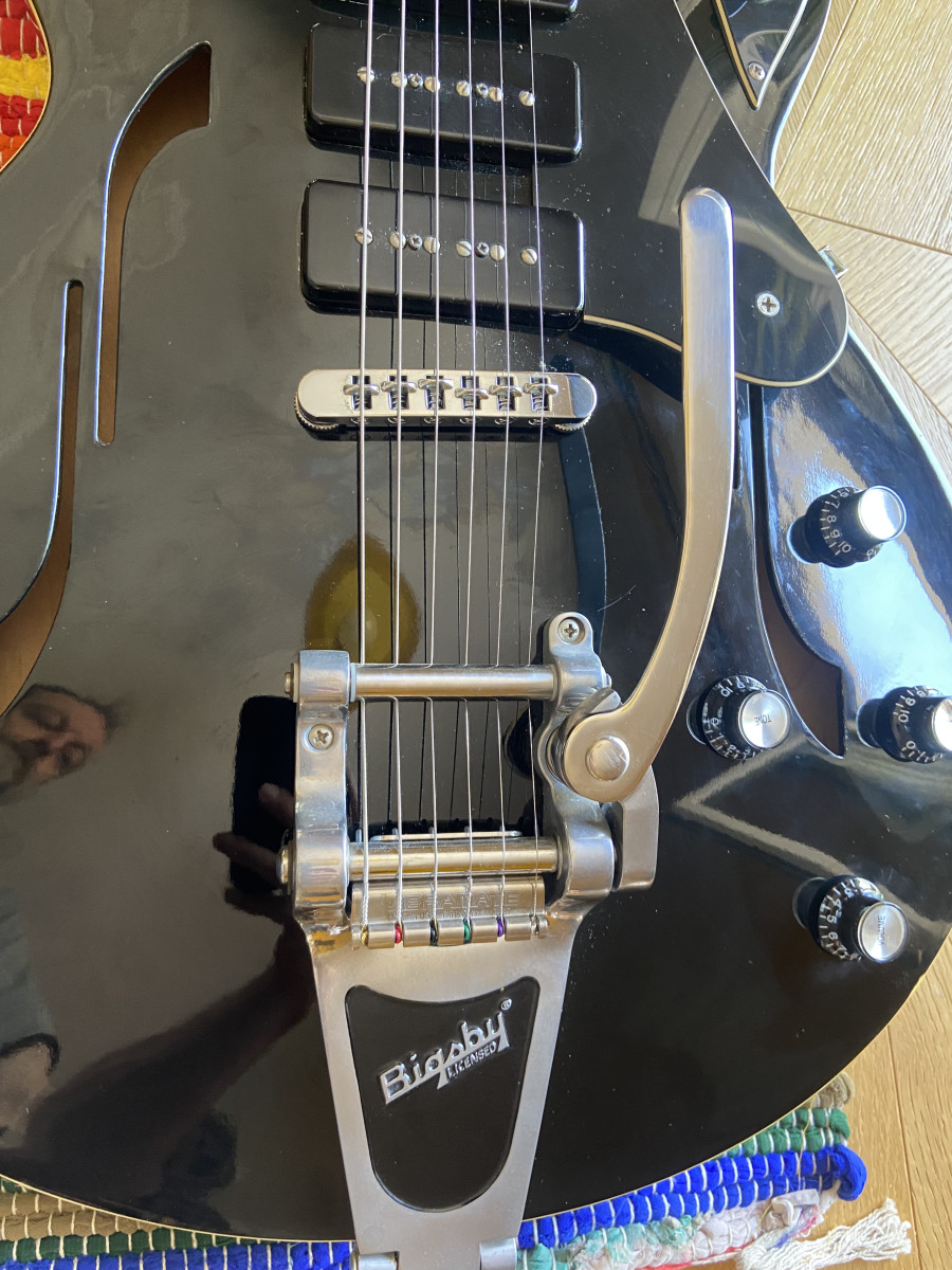 Se hicieron pocas y se buscan. Bigsby, Grover y unas P90 que suenan espectaculares. Si estás mirando este anuncio sabes de qué guitarra estamos hablando. Tiene sus toquecitos por los años y los bolos. Incluye maleta rigida y un Vibramate para que el Bigsby no te quite dos años de vida cada vez que cambias cuerdas.