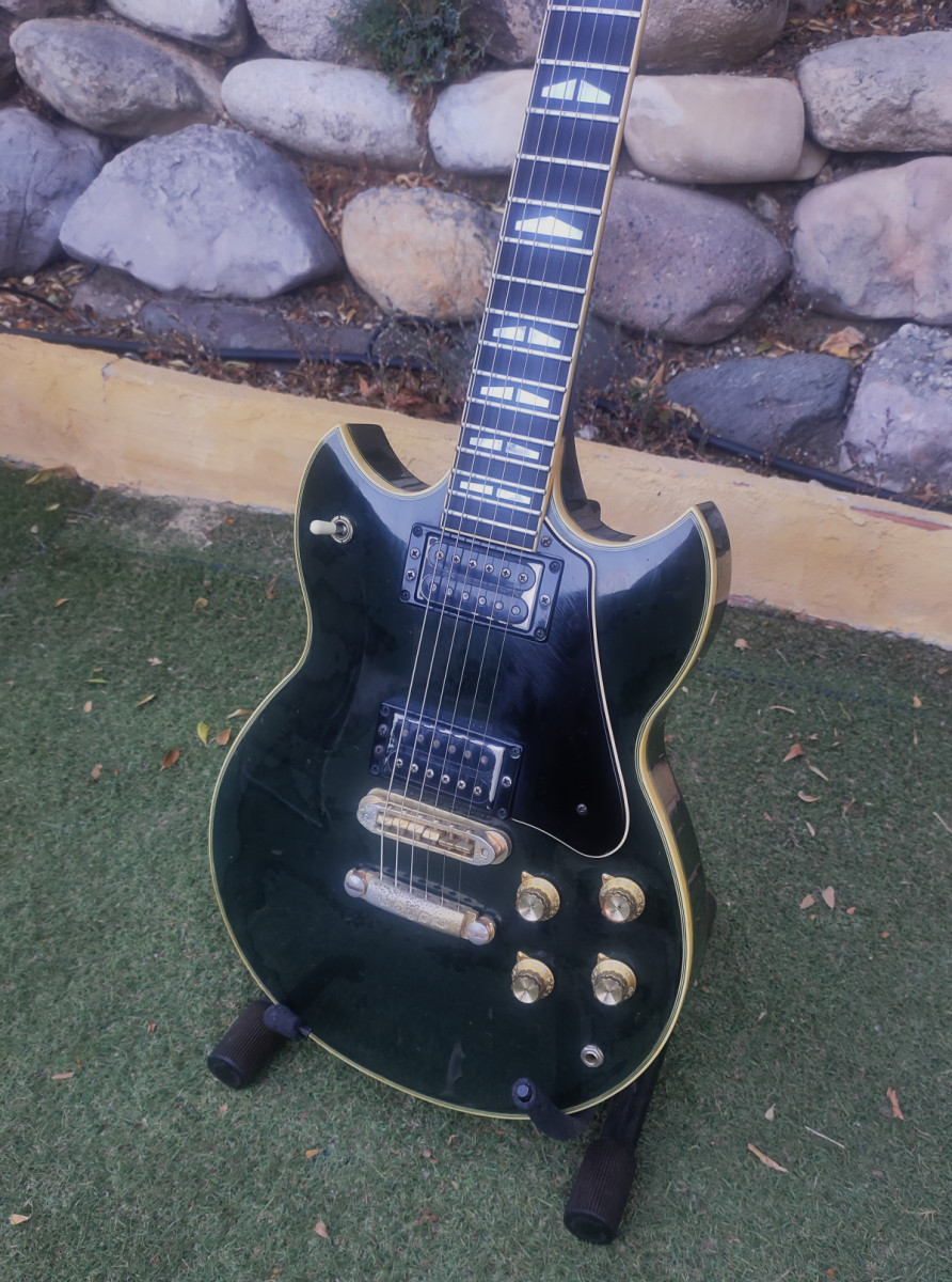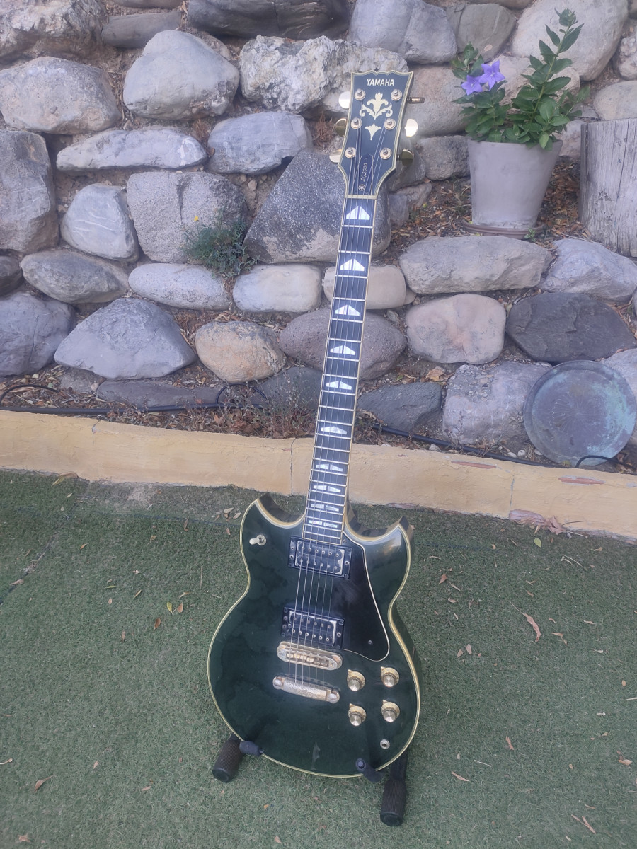 Yamaha SG2000 de 1979, sobran las palabras. Está en perfecto estado, ajustada y lista para ser tocada. Lleva su estuche original, llave para el alma e incluso el trapo para limpiarla que traían. El color negro se ha descolorido un poco del paso del tiempo lo que le da un carácter muy auténtico. Trato en mano.
