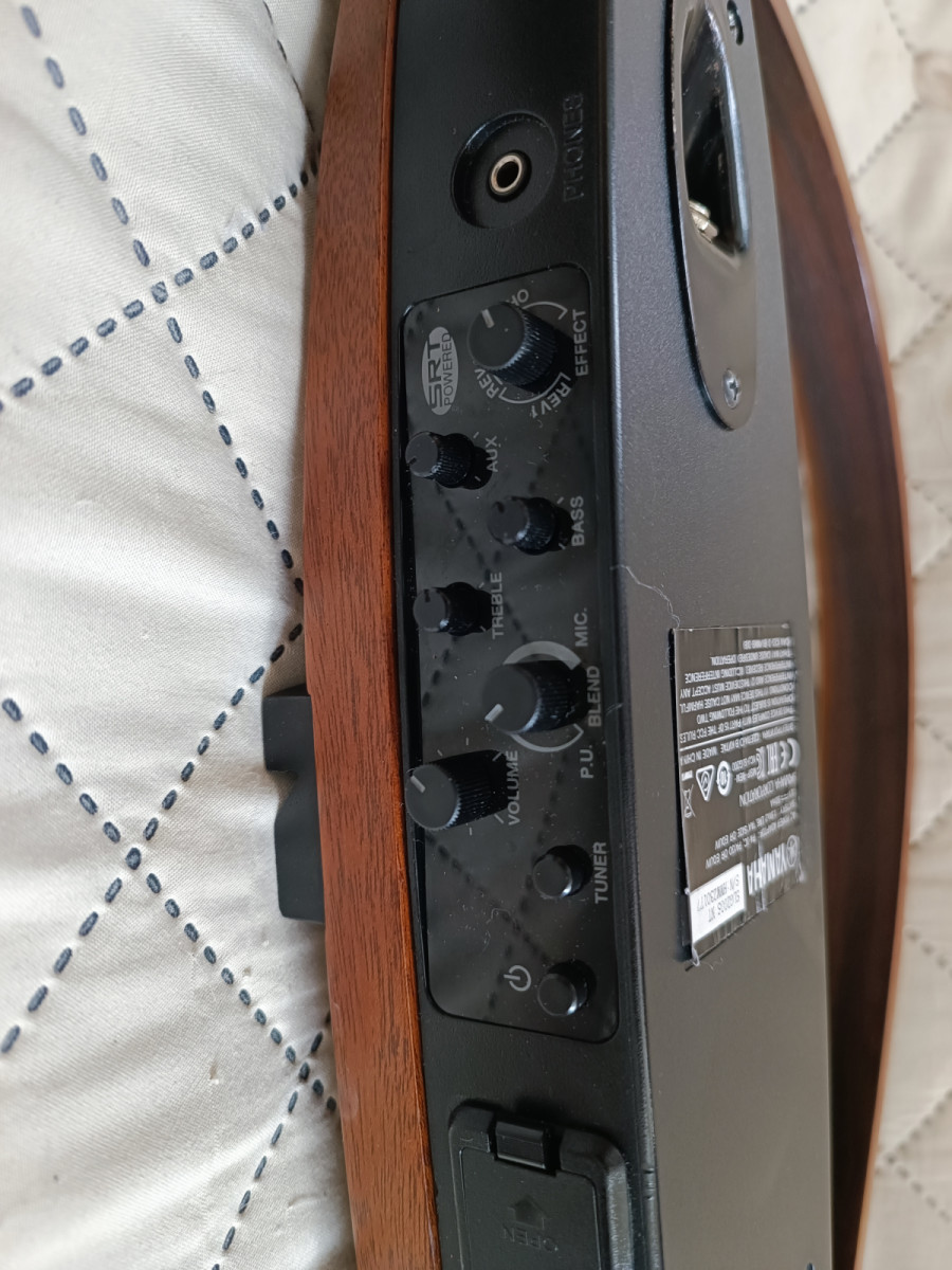 Reguladores: Power, Master Volume, Aux In Volume, Bass, Treble, Tuner, Blend & Smooth Control Effects (Reverb 1, Reverb 2, Chorus)