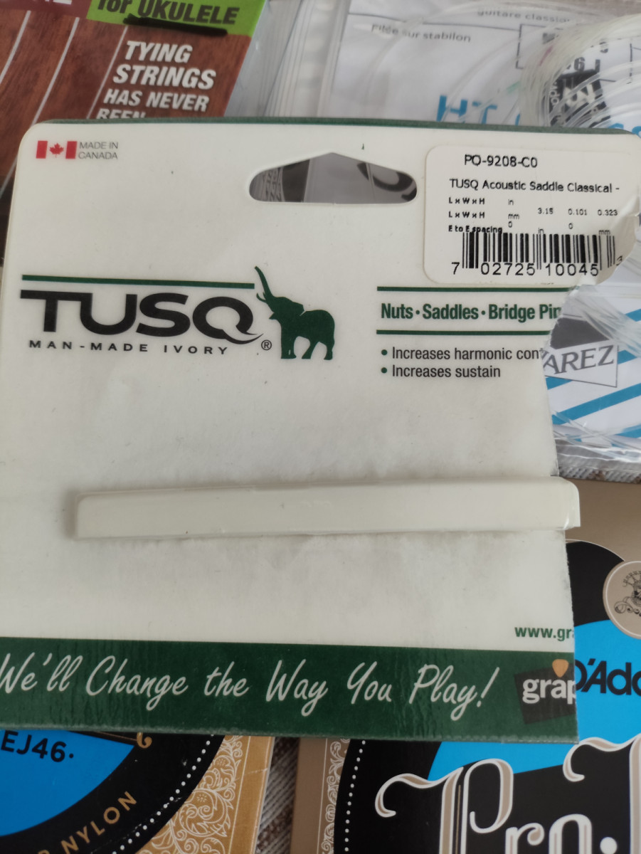 y 2 juegos de cuerdas sin estrenar D'Addario, tres cuerdas de nylon savarez,y un juego de string tie para las cuerdas de nylon que tenía pensado poner y nunca lo hice.