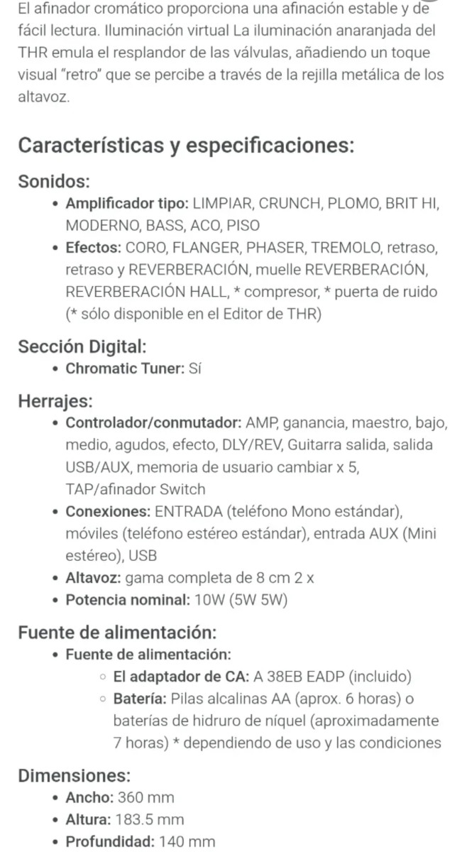 El Yamaha THR10 un tono sorprendente, efectos de calidad, playback Hi-Fi estéreo de calidad, versatilidad, software editor, conexión USB, tono real de válvula (incluso a bajo volumen), afinador. Prepárate para pasar más tiempo pegado a tu guitarra
