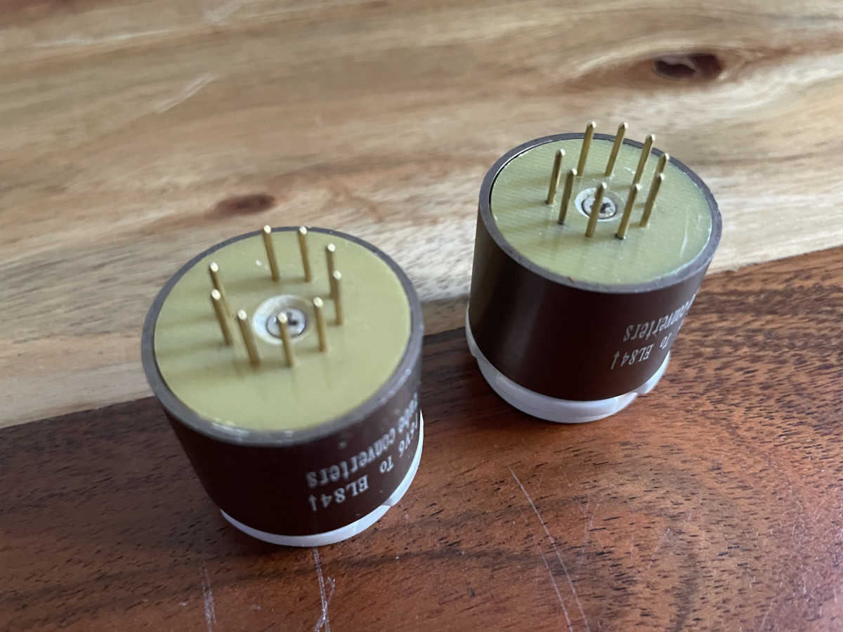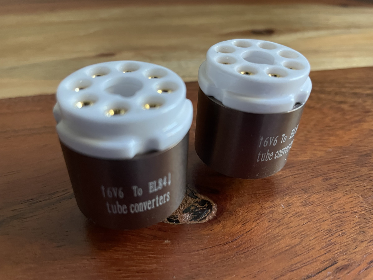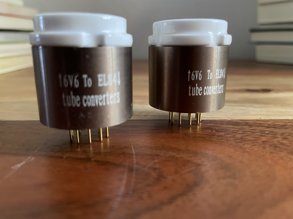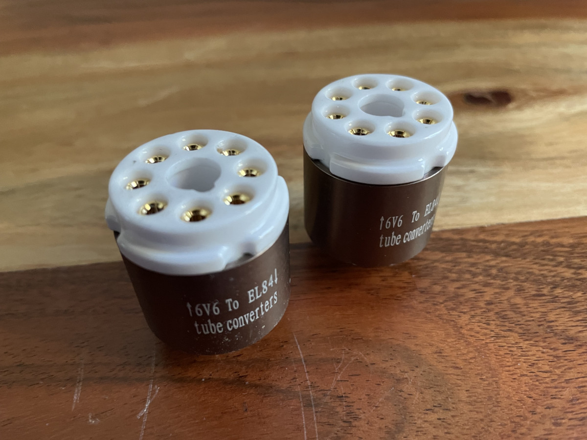 Dos zócalos que permiten conectar una válvula tipo 6V6 a un zócalo para válvula tipo EL84.