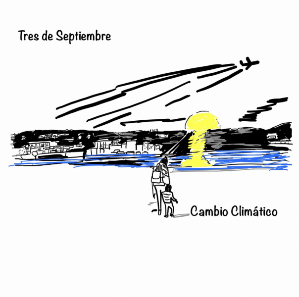 Pues bien, llega ahora el momento de hablar del precioso trabajo de ese profesor, César Torres. Usando el nombre de "Tres de Septiembre" para este proyecto musical, nos muestra "Cambio Climático", un álbum de 8 temas con los que no hay que confiarse: aunque el inicio nos lleve por lugares como el tango, el flamenco o la guitarra clásica, el viaje en realidad nos llevará por el pop, el indie, el rock y hasta la música lounge.