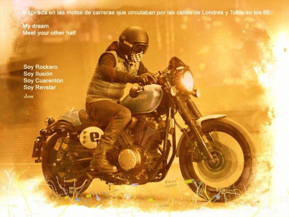 "Se trata de un montaje digital inspirado en el mundo de la moto, igual que ocurre con el diseño de las guitarras de la serie Revstar. Intenta transmitir la idea de lo que significa para los amantes de las 6 cuerdas una buena guitarra: una fiel compañera de viaje, siempre a nuestro lado, acompañándonos allá donde la vida nos lleve, endulzando el viaje y, en ocasiones (quizá siempre), marcando el rumbo..."