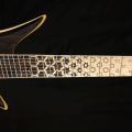Pero no sólo de esa forma se puede controlar, también se puede automatizar en un patrón fijo de cambio de color. Cabe destacar que, dejando de lado las luces y los artificios, la guitarra también presenta un interesante trabajo de construcción en madera de nogal, incrustaciones de mástil a juego y puente Hipshot.