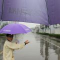 Nos vuelven a acercar paraguas morados (la lluvia no cesa) y nos reunimos de nuevo en la zona de oficinas para despedirnos del equipo y del Sr. Sakurai. Ha sido una mañana intensa y se impone un descanso; Rocky nos lleva a comer junto con nuestra guía china (que se hace llamar Jennifer) a un restaurante de comida local, donde nos sirven pato laqueado y varias delicias chinas sobre una tabla giratoria de cristal, al parecer todo un lujo… De nuevo sin postre, aunque nos sirven té de varios tipos. No hay mucho tiempo; nuestro equipaje espera en el autobús (cuyo conductor se llama Ma, “caballo”), que nos lleva a la estación central de Hangzhou, un portento de modernidad, un recinto de hormigón y cristal del que salen multitud de andenes surcados por convoyes igual de modernos.