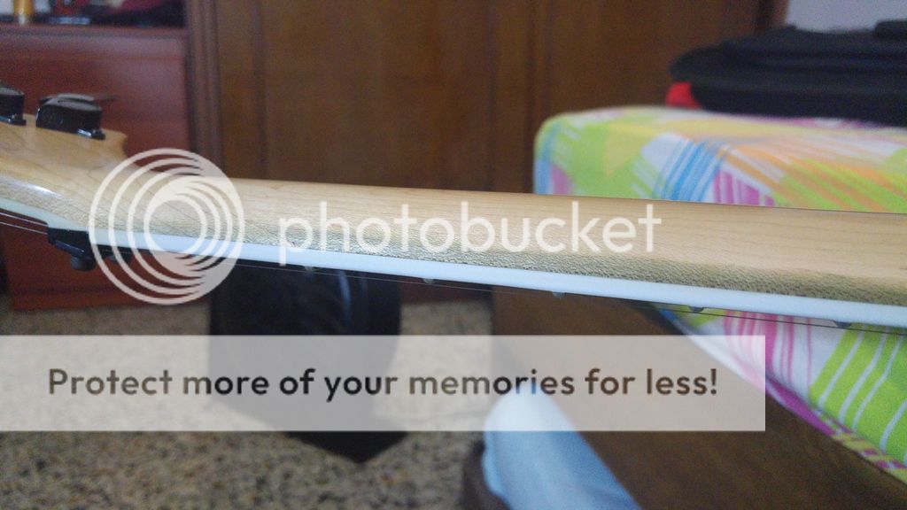 Como podrán notar, se ve como si el mástil estuviera ¿manchado?, es que realmente no sé que sea eso, lo intenté limpiar una vez con un paño seco, luego humedecido en agua y luego en alcohol, y ninguno dio resultado de nada... es como si la pintura se estuviera cayendo o algo así...