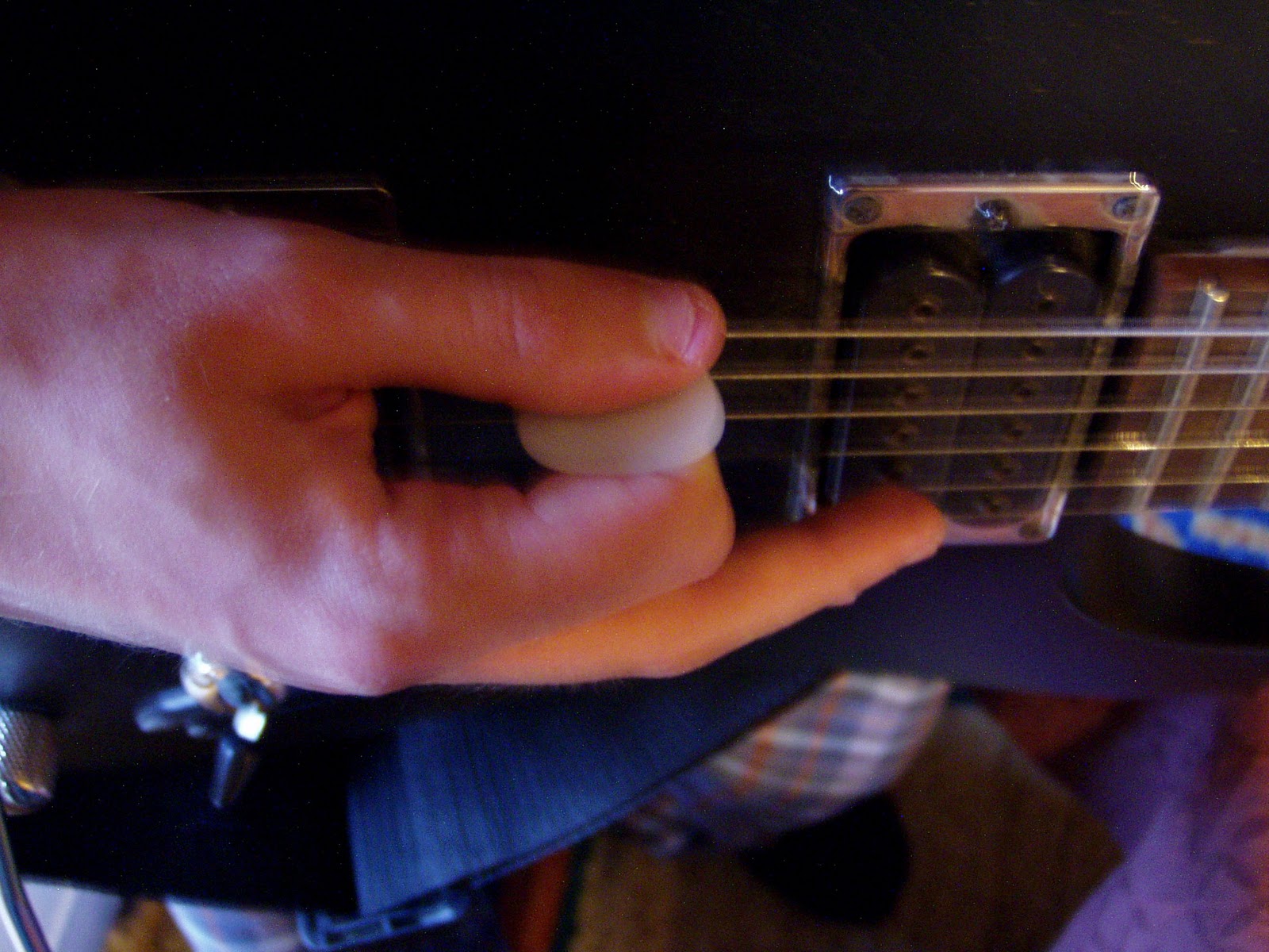 Hola, bueno tengo una enorme duda sobre el tema de agarre de pua. Desde que toco la guitarra agarro la pua de la siguiente manera: