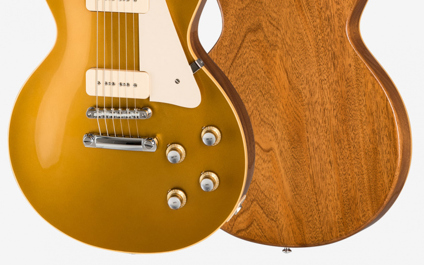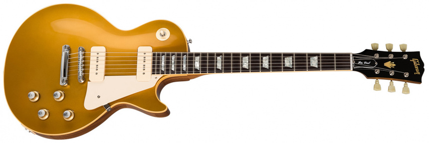Según Gibson, en el verano de 1968 hizo algo sin precedentes; relanzar dos guitarras que había dejado de fabricar una década antes, los modelos Les Paul Custom y Les Paul Goldtop. Como vimos hace poco con ocasión de su 50 aniversario, a la primera le añadieron una tapa de Arce al cuerpo de Caoba, estableciendo lo que sería el estándar de fabricación para este modelo a partir de entonces, mientras que la segunda mantenía la especificaciones de la primera Les Paul lanzada por Gibson en 1952, pero con la mejora que supuso el ABR-1 Tune-O-Matic introducido en 1955 sustituyendo al primer puente y cordal trapezoidal.