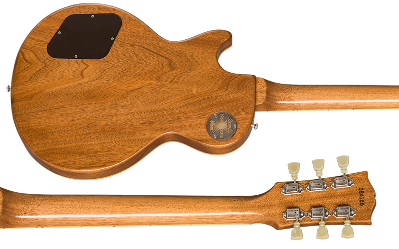 Una réplica de la primera tanda de guitarras que formaron parte de aquella reedición, y que se caracterizaban por el inlay con forma de corona en la pala en lugar de la leyenda "Les Paul" de la original del 52.