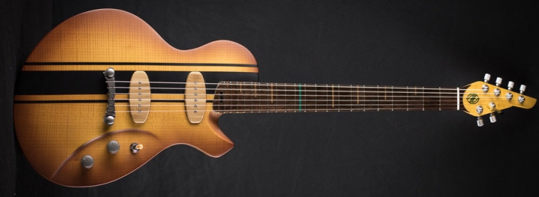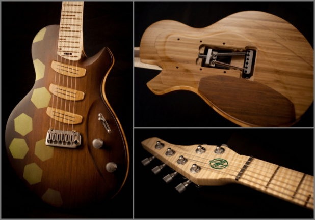 Una guitarra con un cuerpo de Bambú que cuenta con cámaras de resonancia en forma de hexágono y una tapa de Arce Flameado, mástil de Arce con diapasón de Bambú, y unas pastillas tipo P-90 desarrolladas por el luthier Jean-Yves Alquier. Como he comentado antes, todas las partes metálicas son de Titanio. Esto incluye el puente tipo Wraparound (también hay una versión con vibrato), el selector de pastillas, el conector, las tapas de los potenciómetros, e incluso la cejuela.