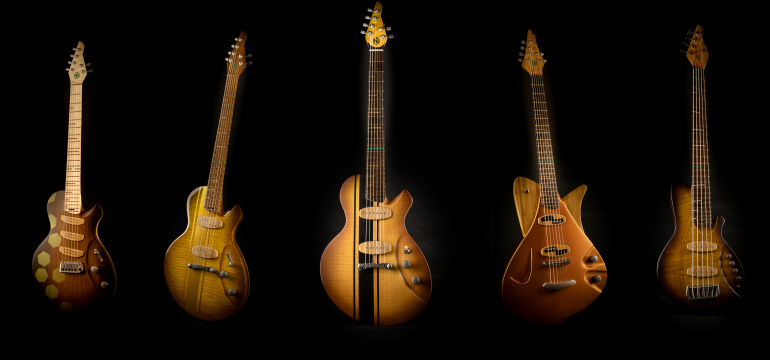 En la electrónica monta 3 humbuckers con imanes de cuchilla marca de la casa controladas por un selector de 5 posiciones, y como en la anterior todo el hardware es de Titanio incluido el vibrato de diseño propio y las varillas que refuerzan el mástil. Su precio es de 8.500 €.