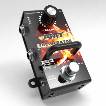 La compañía rusa AMT Electronics, que ya presentó hace algo más de una semana su peculiar nueva propuesta en preamplificadores en formato pedal, sigue dando a conocer más novedades. En esta ocasión, se trata de un nuevo pedal de puerta de ruido al que han llamado Incinerator, y que ofrece las características comunes a este tipo de efectos con la posibilidad de controlarlo de forma remota. Además, su aspecto externo presenta otros elementos comunes con la recién presenta X-Lead series además del control remoto, como las “orejas” de fijación mediante tornillos lo cual hace pensar que esta nueva remesa de pedales de la compañía está diseñada para funcionar conjuntamente y obedeciendo a las órdenes remotas de su “AMT Brick”, un producto misterioso no presentado todavía.