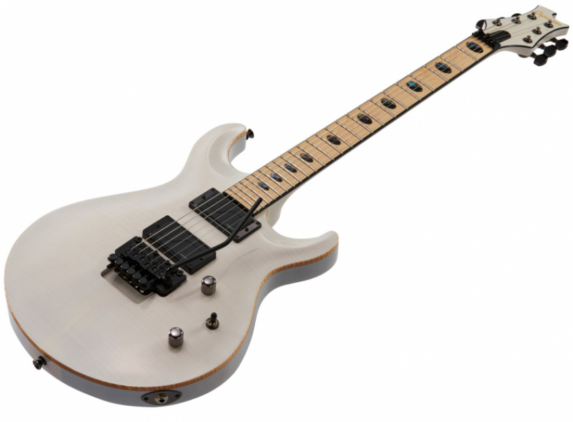 El mástil encolado, con la pala en un ángulo de 15" como es habitual en la marca, es de una pieza de Arce con escala 24 3/4″ con un diapasón también de Arce con radio compuesto 14"-16", 24 trastes Jumbo, inlays ovalados de Abalone y Acrílico, y un clavijero Gotoh SG301-01 H.A.P.