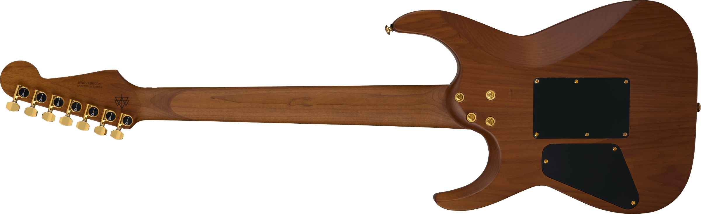 La nueva Charvel Angel Vivaldi Signature Pro-Mod Nova-7 NAT sigue contando con un cuerpo de tilo como las anteriores, pero en este caso con un diseño Dinky modificado de tilo tostado y con una chapa de arce flameado en acabado natural.