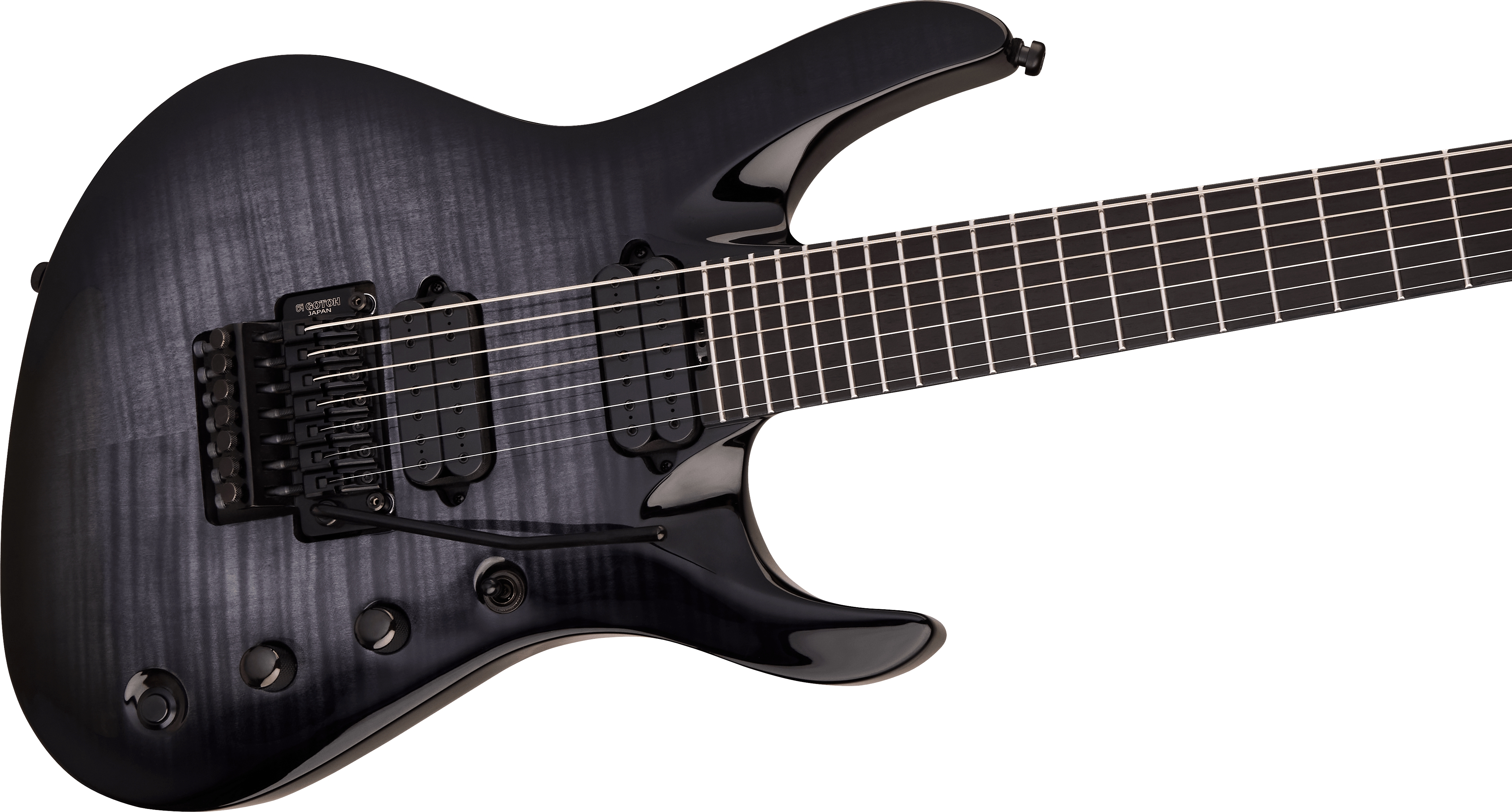 Las Jackson Pro Plus Series Signature Chris Broderick Soloist SL6 y SL7 de 6 y 7 cuerdas, comparten el mismo diseño de cuerpo basado en un dibujo que Chris hizo cuando era adolescente. En este caso es de caoba con una chapa de arce flameado en acabado Transparent Black.